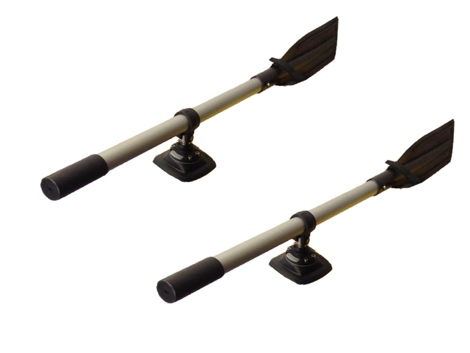 В комплект входит 2 весла длинной 1,3 метра, 2 хомута, позволяющие регулировать весла по вылету и 2 замка с площадками на баллон.