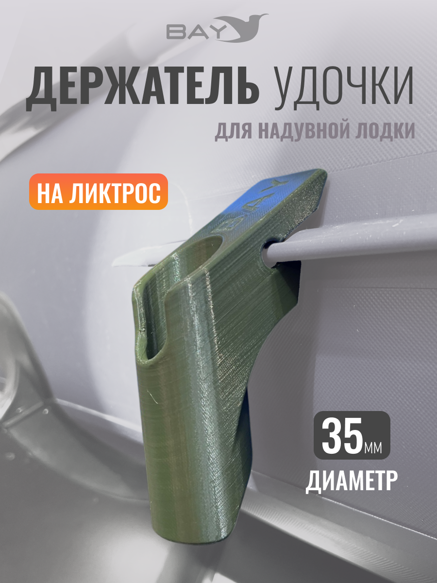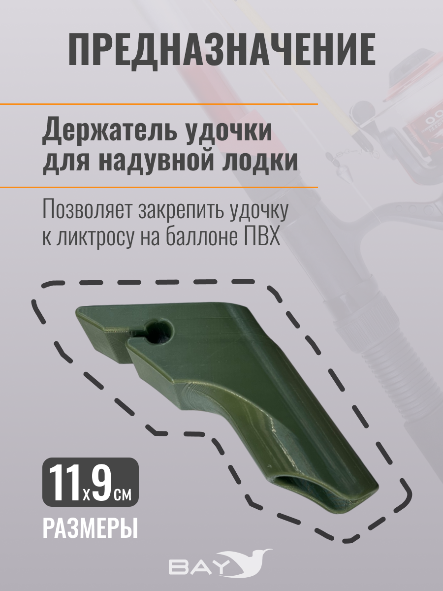 Удобный и надежный держатель для спиннинговых и фидерных удилищ, предназначенный для крепления на лик-трос лодки. Изготовлен из прочного износостойкого материала, обеспечивает надежную фиксацию удочки во время рыбалки.