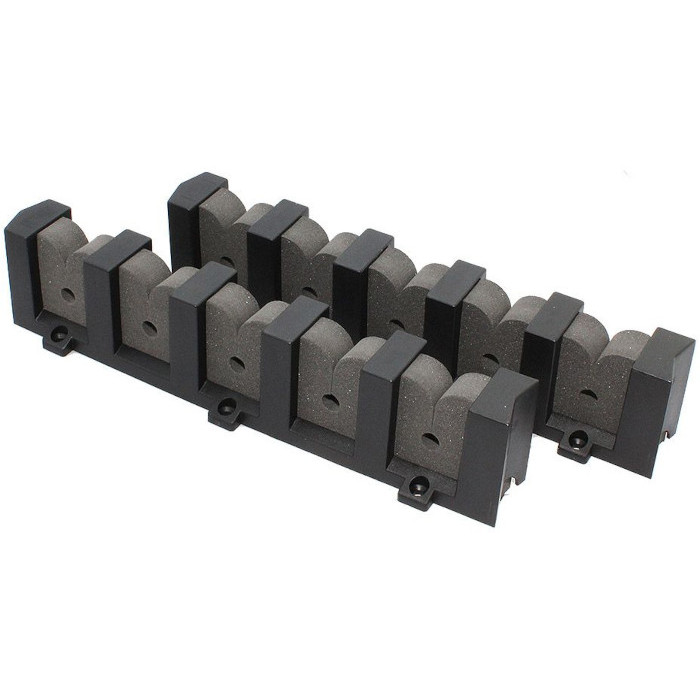 Каркас выполнен из прочного пластика. Мягкие вспененные неопреновые вставки позволяют плотно зафиксировать пять удилищ на держателе, не повреждая их.