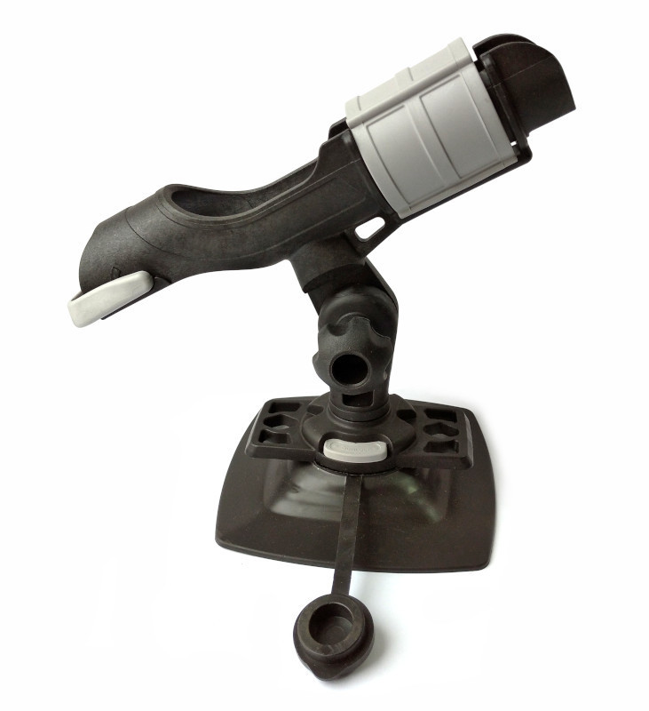 Крепкий, универсальный и функциональный держатель, изготовленный из высококачественного пластика. Для любителей троллинговой ловли в конструкции предусмотрено фиксирующее кольцо для крепления катушки спиннинга.
