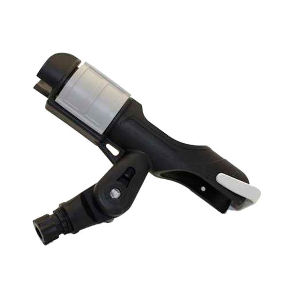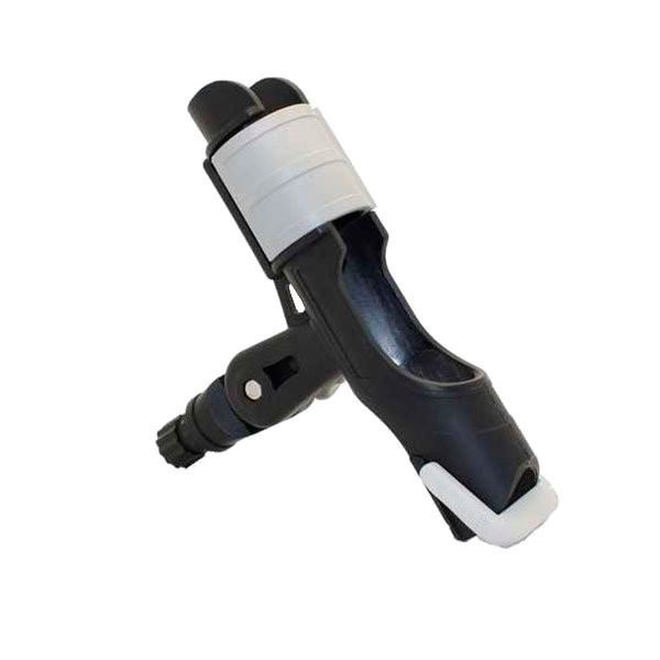 Практичный держатель удилища изготовлен из ударопрочного пластика. Конструкция держателя состоит из удерживающей удочку колбы и поворотного фиксатора для платформы. Стопорный упор, предотвращающий проворачивание спиннинга, а также кольцо которое обеспечит надежную фиксацию спиннинга во время троллинга. Держатель регулируется по наклону при помощи затяжного барашка.