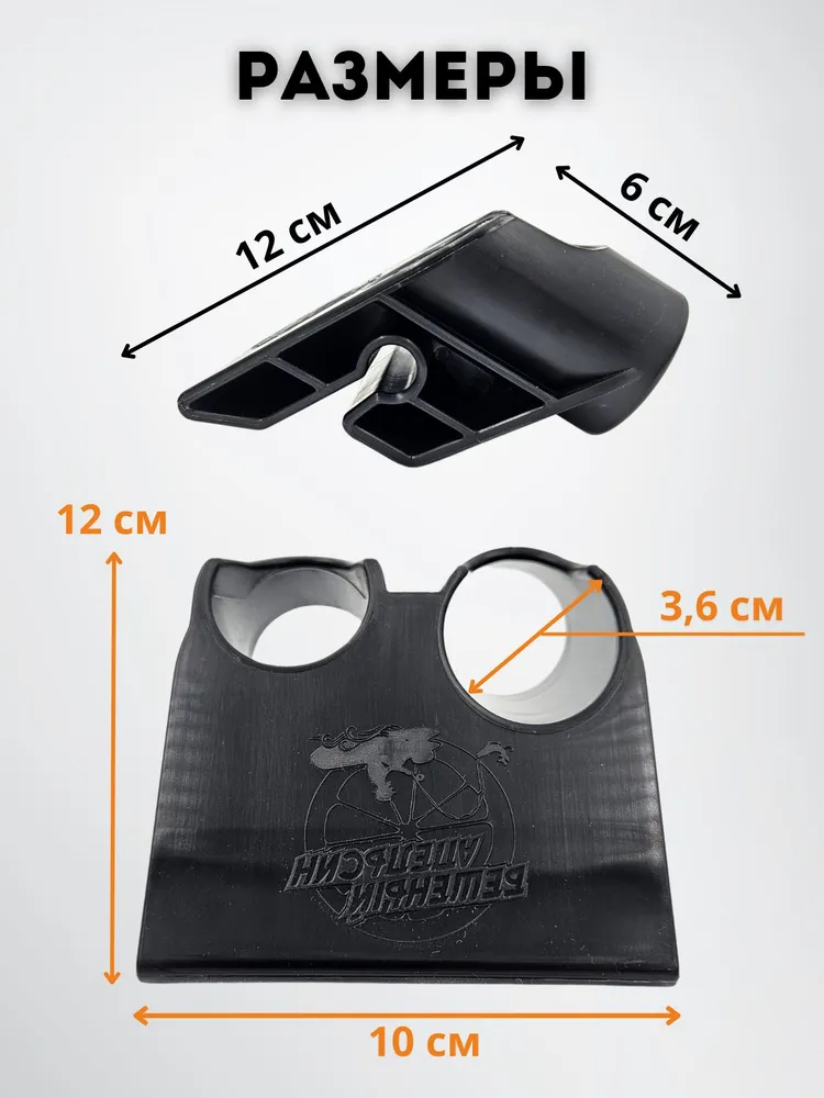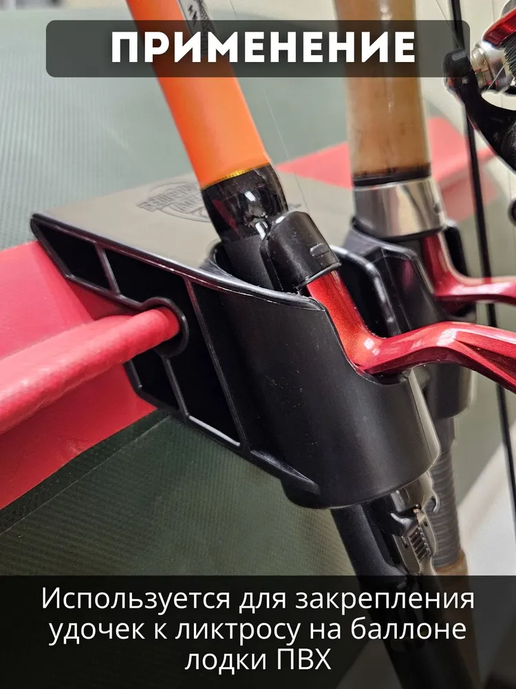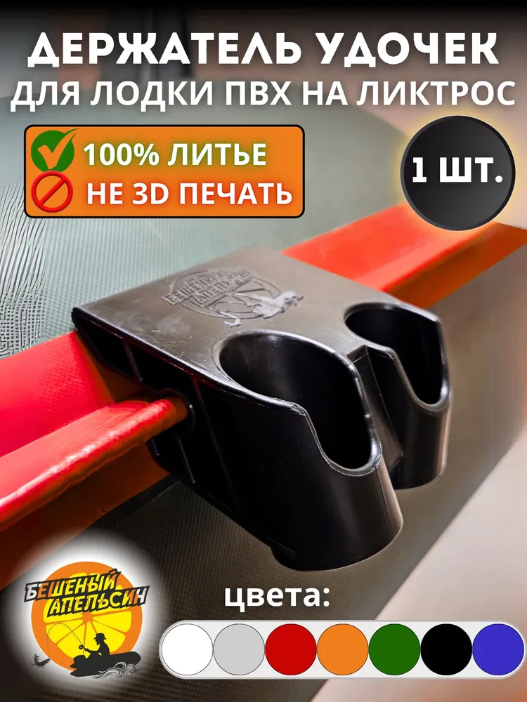 Держатель удочки двойной на ликтрос надувной лодки от торговой марки «Бешеный Апельсин». Это держатель с двумя разнонаправленными отверстиями. В отличие от одинарного держателя, с этим держателем можно заниматься троллингом за счёт увеличенной ширины до 10 см.