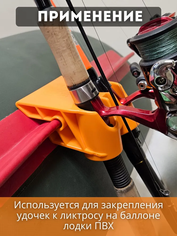Держатель удочки двойной на ликтрос надувной лодки от торговой марки «Бешеный Апельсин». Это держатель с двумя разнонаправленными отверстиями. В отличие от одинарного держателя, с этим держателем можно заниматься троллингом за счёт увеличенной ширины до 10 см.
