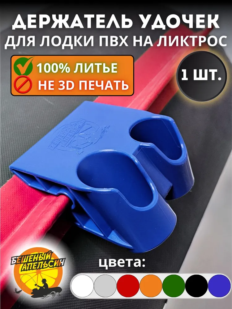 Держатель удочки двойной на ликтрос надувной лодки от торговой марки «Бешеный Апельсин». Это держатель с двумя разнонаправленными отверстиями. В отличие от одинарного держателя, с этим держателем можно заниматься троллингом за счёт увеличенной ширины до 10 см.