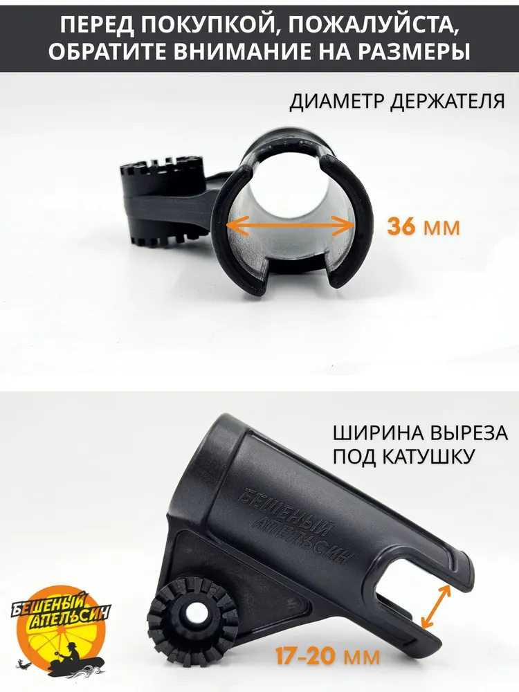 Диаметр держателя — 36 мм. Ширина выреза под катушку — от 17 до 20 мм. Материал струбцины и держателя — стеклонаполненный полиамид (капролон).