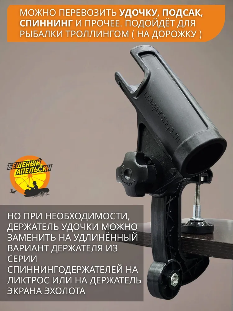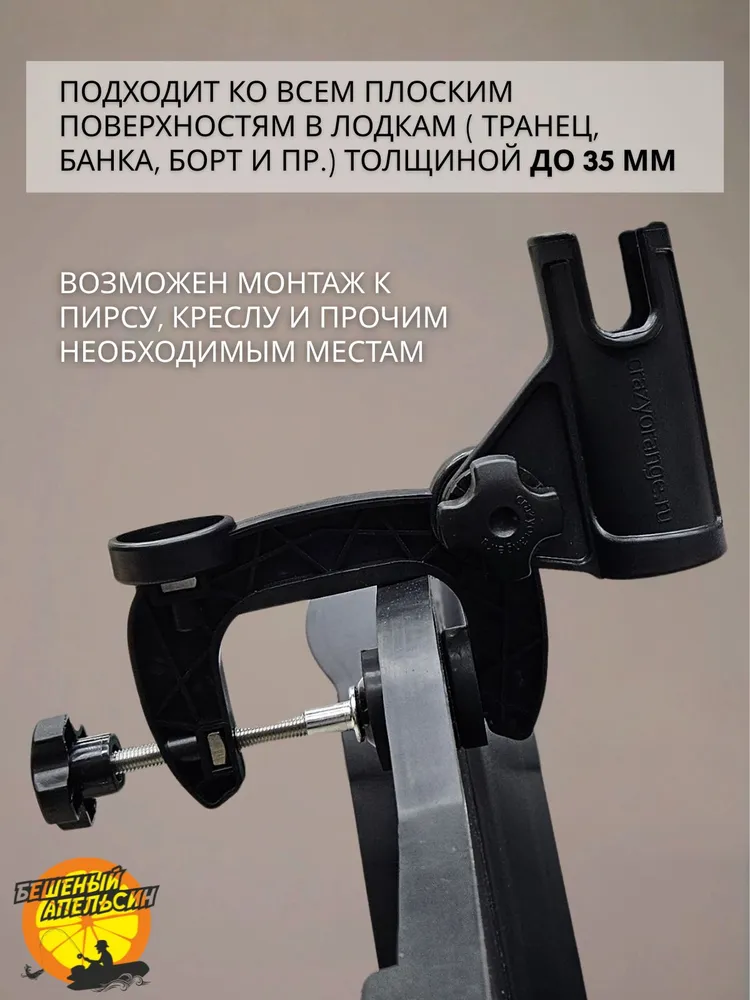 Держатель спиннинга, удочки, подсака и прочих аксессуаров для использования в лодке и не только. Это очередная разработка компании «Бешеный Апельсин».