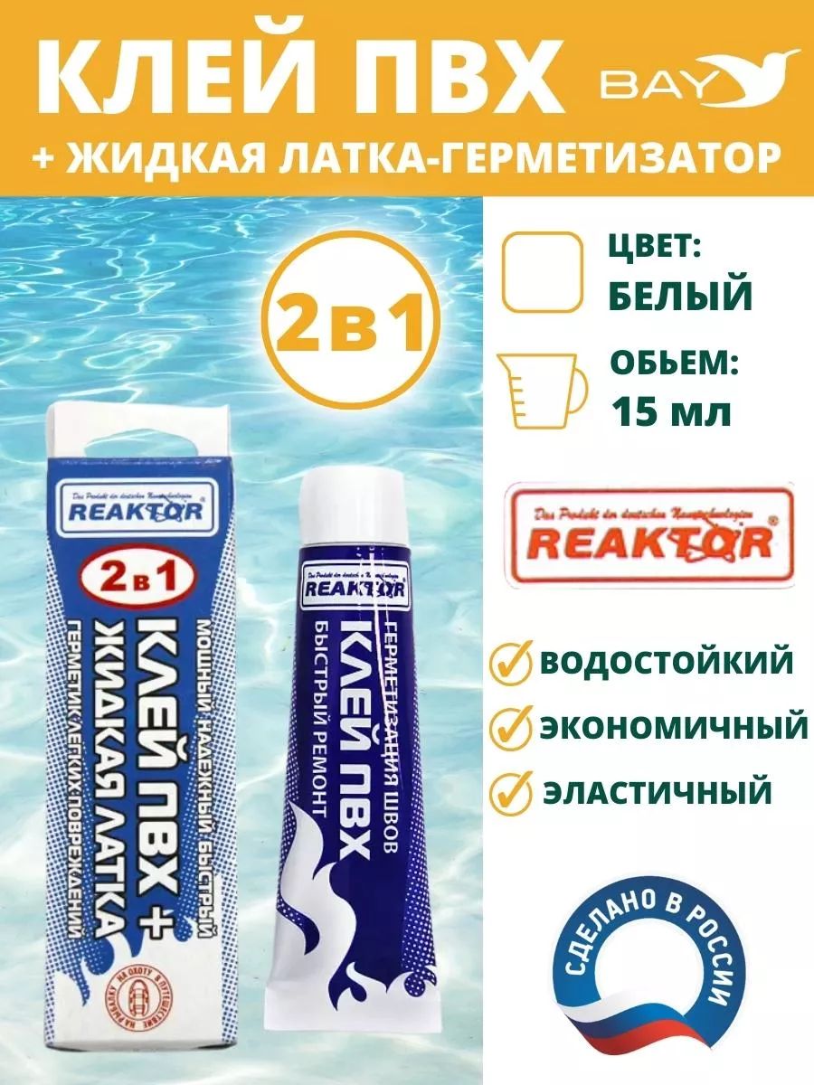 2 в 1: жидкая латка-герметизатор (быстрая заплатка – герметизатор швов) – это специально разработанный продукт от немецкой компании Reaktor, который предназначен для оперативного ремонта надувных лодок, бассейнов, тентов и др. изделий из тканей ПВХ. Современный полимер представляет собой композиционный состав полиуретановых смол, активаторов, ускорителей и стабилизаторов. Полная полимеризация наступает через 24 часа, однако использовать изделие под неполной нагрузкой можно спустя 1 – 12 часов в зависимости от характера повреждения и температуры окружающего воздуха. Преимущества: Клей ПВХ предназначен для оперативного ремонта! До полной полимеризации не накачивайте лодку и другие надувные изделия, используемые на воде, до максимально рекомендованного значения, а накачайте по возможному минимуму лишь для поддержания ее на плаву! Избегайте эксплуатации лодки при температуре свыше 40 градусов цельсия! При ремонте лодок и других надувных изделий, используемых на воде, периодически проверяйте герметичность отремонтированных повреждений! Вся продукция компании Reaktor упакована в дорогие алюминиевые тубы, что предотвращает преждевременную полимеризацию и высыхание. по мере использования подворачивайте «хвостик» тюбика, удаляя лишнее воздушное пространство. Быстрый ремонт, спасатель в сложных ситуациях, ремкомплект в походе отпуске кемпинге сплав лодка палатка велосипед шина.