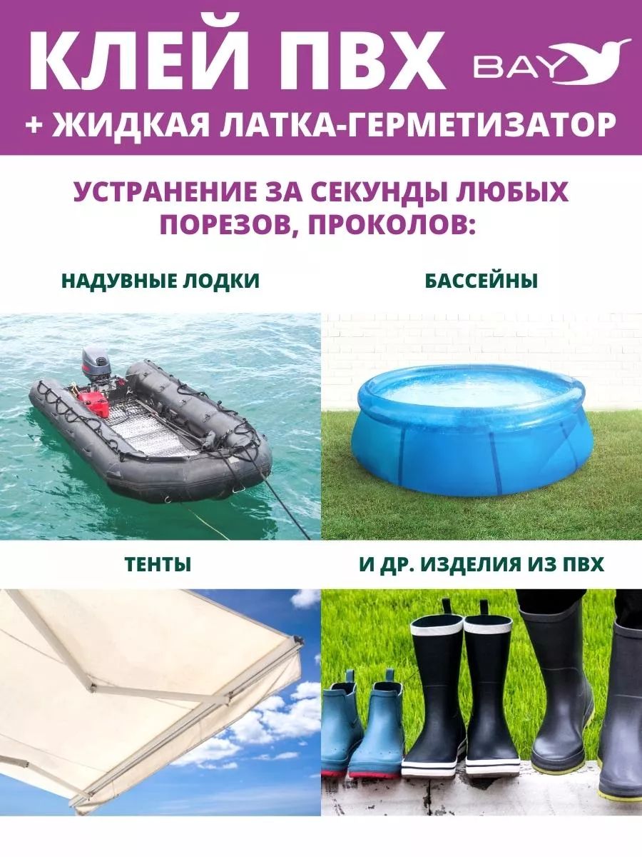 2 в 1: жидкая латка-герметизатор (быстрая заплатка – герметизатор швов) – это специально разработанный продукт от немецкой компании Reaktor, который предназначен для оперативного ремонта надувных лодок, бассейнов, тентов и др. изделий из тканей ПВХ. Современный полимер представляет собой композиционный состав полиуретановых смол, активаторов, ускорителей и стабилизаторов. Полная полимеризация наступает через 24 часа, однако использовать изделие под неполной нагрузкой можно спустя 1 – 12 часов в зависимости от характера повреждения и температуры окружающего воздуха. Преимущества: Клей ПВХ предназначен для оперативного ремонта! До полной полимеризации не накачивайте лодку и другие надувные изделия, используемые на воде, до максимально рекомендованного значения, а накачайте по возможному минимуму лишь для поддержания ее на плаву! Избегайте эксплуатации лодки при температуре свыше 40 градусов цельсия! При ремонте лодок и других надувных изделий, используемых на воде, периодически проверяйте герметичность отремонтированных повреждений! Вся продукция компании Reaktor упакована в дорогие алюминиевые тубы, что предотвращает преждевременную полимеризацию и высыхание. по мере использования подворачивайте «хвостик» тюбика, удаляя лишнее воздушное пространство. Быстрый ремонт, спасатель в сложных ситуациях, ремкомплект в походе отпуске кемпинге сплав лодка палатка велосипед шина.