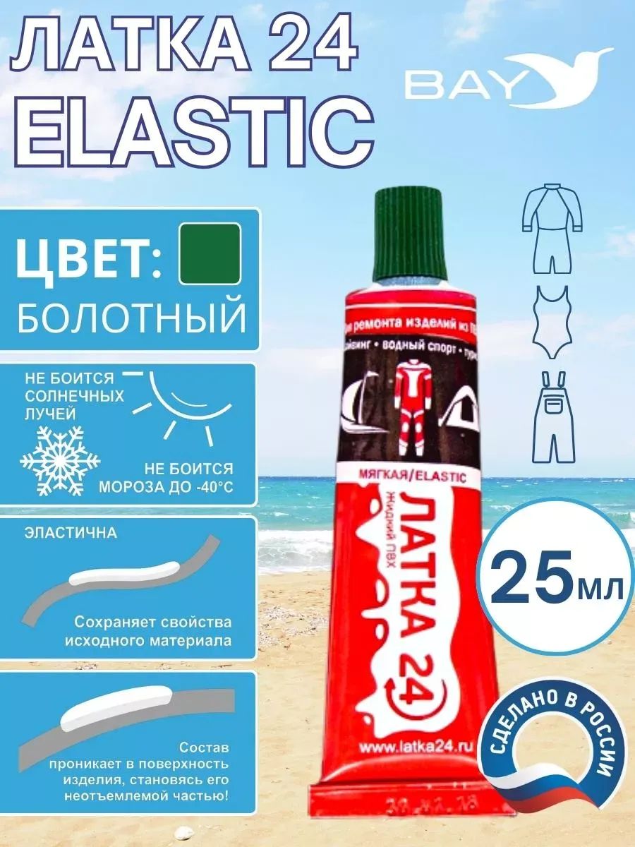 Эластичная жидкая латка 25г клей Elastic для лодок, бассейнов, матрасов и изделий из ПВХ. Болотный
