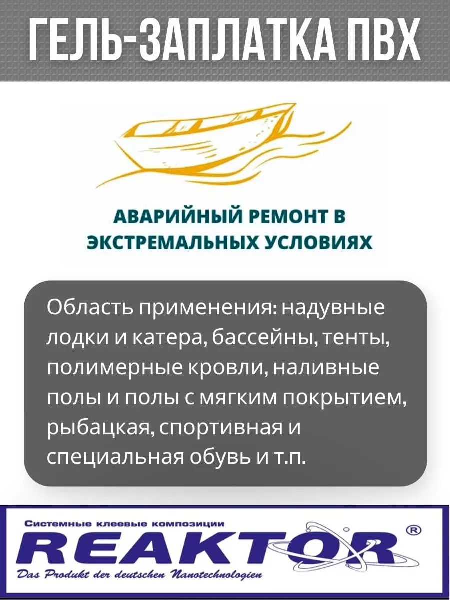 Гель-заплатка армированная особопрочная зеленый 30мл (40гр) от бренда REAKTOR – это идеальное решение для ремонта и защиты резиновых лодок. Эта универсальная спортивная заплатка создана для долговечного использования в самых трудных условиях. Благодаря армированной конструкции и особой прочности, она обеспечивает надежное закрытие дыр и трещин, предотвращая проникновение воды в корпус лодки. Зеленый или яркие другие цвета позволяет легко видеть место применения заплатки, что особенно важно при работе в открытом море. Удобный размер 30мл (40гр) делает ее идеальной для использования в любых ситуациях, требующих быстрого и эффективного ремонта. Выбирая гель-заплатку от REAKTOR, вы гарантируете себе надежность и долговечность вашей лодки. Область применения: надувные лодки и катера, бассейны, тенты, полимерные кровли, наливные полы и полы с мягким покрытием, рыбацкая, спортивная и специальная обувь и т.п.