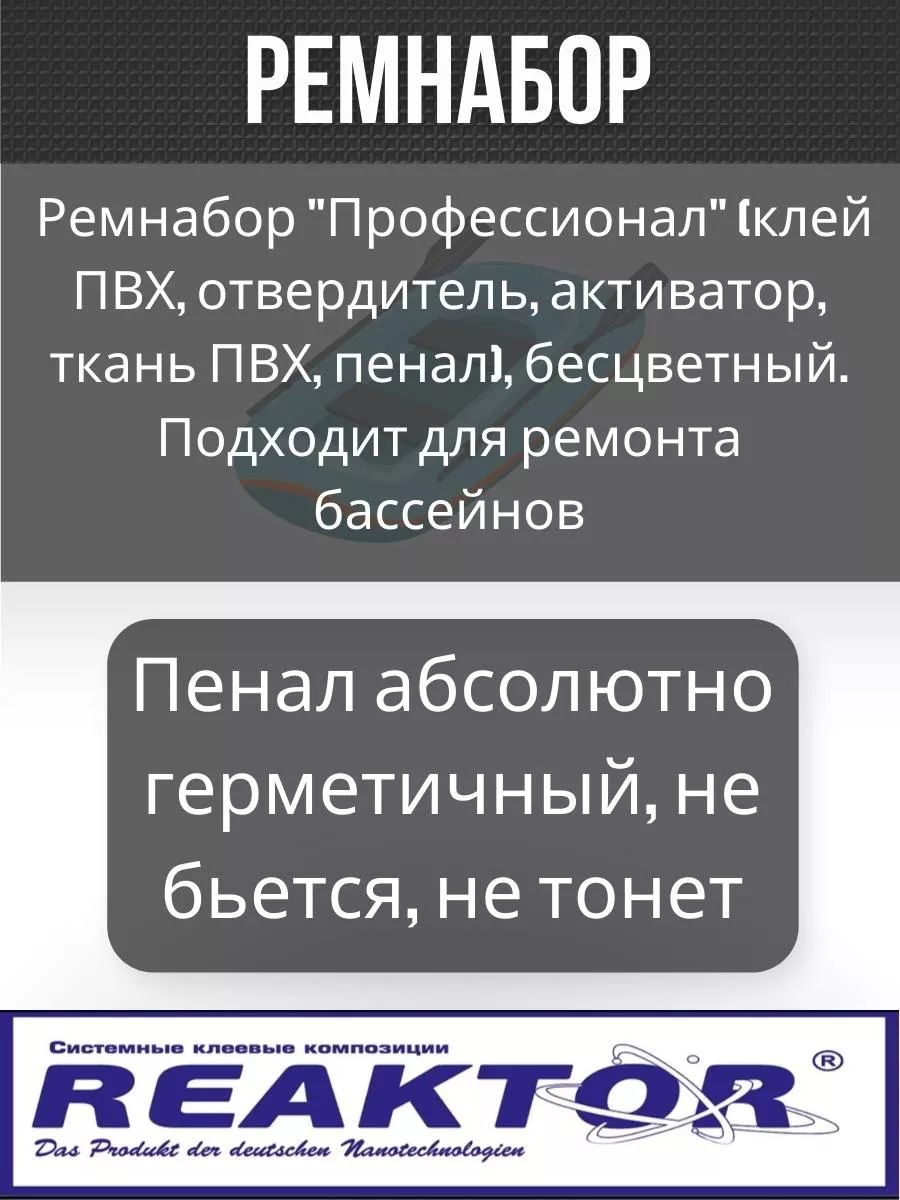 Ремнабор "Профессионал" (клей ПВХ + отвердитель + активатор +ткань ПВХ+пенал) Бесцветный, набор для ремонта лодок, матрасов, бассейнов; ремкомплект для резины