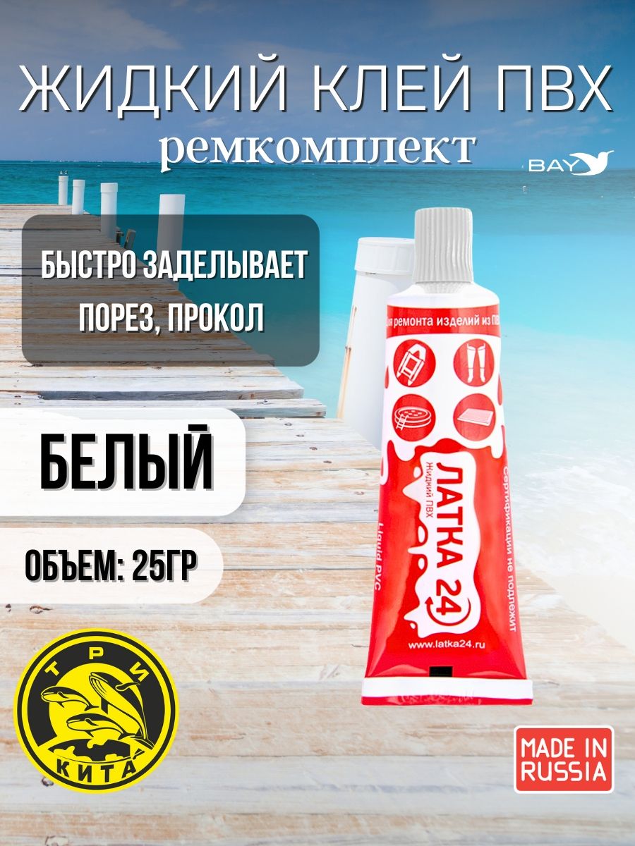 Жидкая латка 24. 25 грамм. Цвет: белый. Водостойки клей-ремкомплект для ПВХ лодок, матрасов, бассейнов, резины.