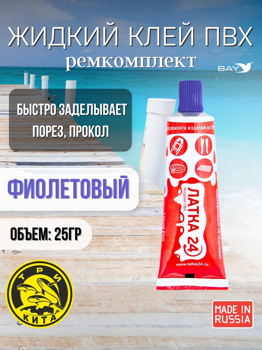 Жидкая латка 24. 25 грамм. Цвет: фиолетовый. Водостойки клей-ремкомплект для ПВХ лодок, матрасов, бассейнов, резины.