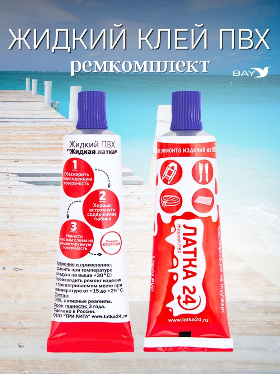Латка 24 может приходить с разным дизайном упаковки, не ухудшающим качество товара, что является правом производителя. Жидкая ЛАТКА 24 для ремонта любых изделий из ПВХ. Теперь Вам не придется искать латку из похожего материала, чтобы заклеить поврежденные матрас или лодку. Достаточно нанести несколько капель на прокол или порез. Возьми с собой в горы, на море, на реку, в поход Жидкую ЛАТКУ 24! Ремонтируемая поверхность должна быть сухой и чистой. При проколе изделия или порезе до 3 см просто нанесите одну или несколько капель состава Жидкой Латки 24 на место прокола или пореза. Для достижения наилучшего результата повторно нанести слой состава через несколько минут. Если повреждение значительно и имеет форму разрыва или пореза более 3 см. - то следует использовать специальную кордовую ткань.
