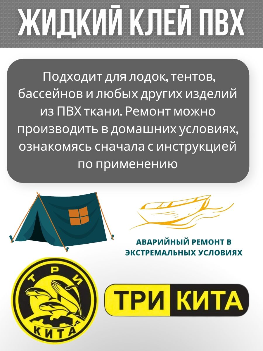 Непогода на рыбалке, и ваша резиновая лодка показала свою уникальность. Такое случается, но вы не переживайте! Ведь теперь у вас есть надежная жидкая латка, которую можно использовать для ремонта вашей ПВХ-лодки. Этот водостойкий клей прекрасно справится с задачей.Когда на поверхности лодочки появится маленькое повреждение, будь то царапина или потертость, этот клей для резины поможет вам вернуть ей прочность и сохранить ее работоспособность. Сразу после применения жидкой латки веселые рыболовные приключения на вашей лодке продолжатся!Не только для ремонта лодок, но и для других видов активного отдыха этот клей является незаменимым товаром. Он подходит также для эва-лодочек и других изделий из ПВХ. Берегите свои ценные вещи и аксессуары - с помощью этого клея они всегда будут в безупречном состоянии.Наши товары созданы специально для любителей рыбалки и туризма.