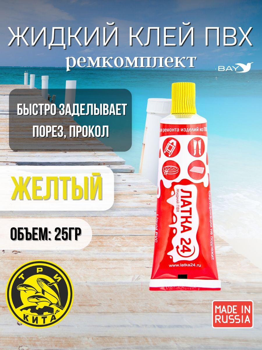 Жидкая латка 24. 25 грамм. Цвет: желтый. Водостойки клей-ремкомплект для ПВХ лодок, матрасов, бассейнов, резины.