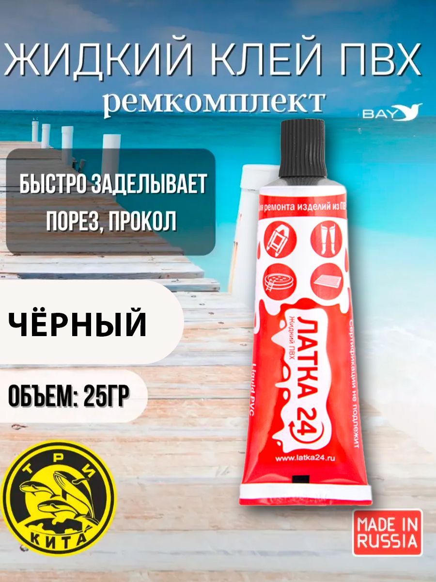 Жидкая латка 24. 25 грамм. Цвет: черный. Водостойки клей-ремкомплект для ПВХ лодок, матрасов, бассейнов, резины.