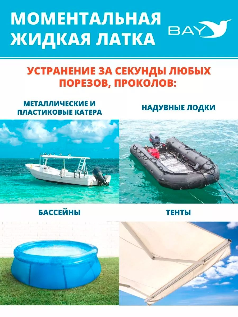 Непогода на рыбалке, и ваша резиновая лодка показала свою уникальность. Такое случается, но вы не переживайте! Ведь теперь у вас есть надежная жидкая латка, которую можно использовать для ремонта вашей ПВХ-лодки. Этот водостойкий клей прекрасно справится с задачей.Когда на поверхности лодочки появится маленькое повреждение, будь то царапина или потертость, этот клей для резины поможет вам вернуть ей прочность и сохранить ее работоспособность. Сразу после применения жидкой латки веселые рыболовные приключения на вашей лодке продолжатся!Не только для ремонта лодок, но и для других видов активного отдыха этот клей является незаменимым товаром. Он подходит также для эва-лодочек и других изделий из ПВХ. Берегите свои ценные вещи и аксессуары - с помощью этого клея они всегда будут в безупречном состоянии.Наши товары созданы специально для любителей рыбалки и туризма.