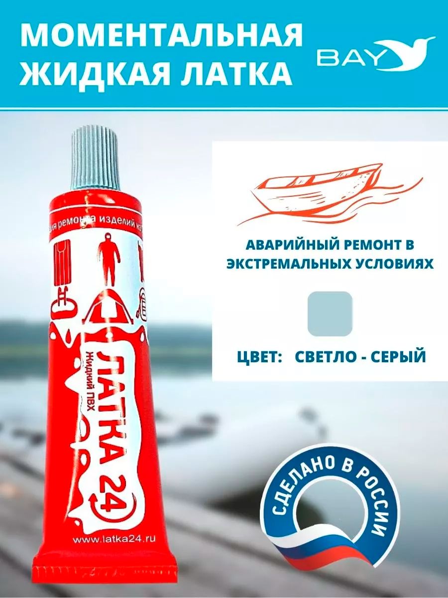 Жидкая латка 24. 25 грамм. Цвет: светло-серый. Водостойки клей-ремкомплект для ПВХ лодок, матрасов, бассейнов, резины.