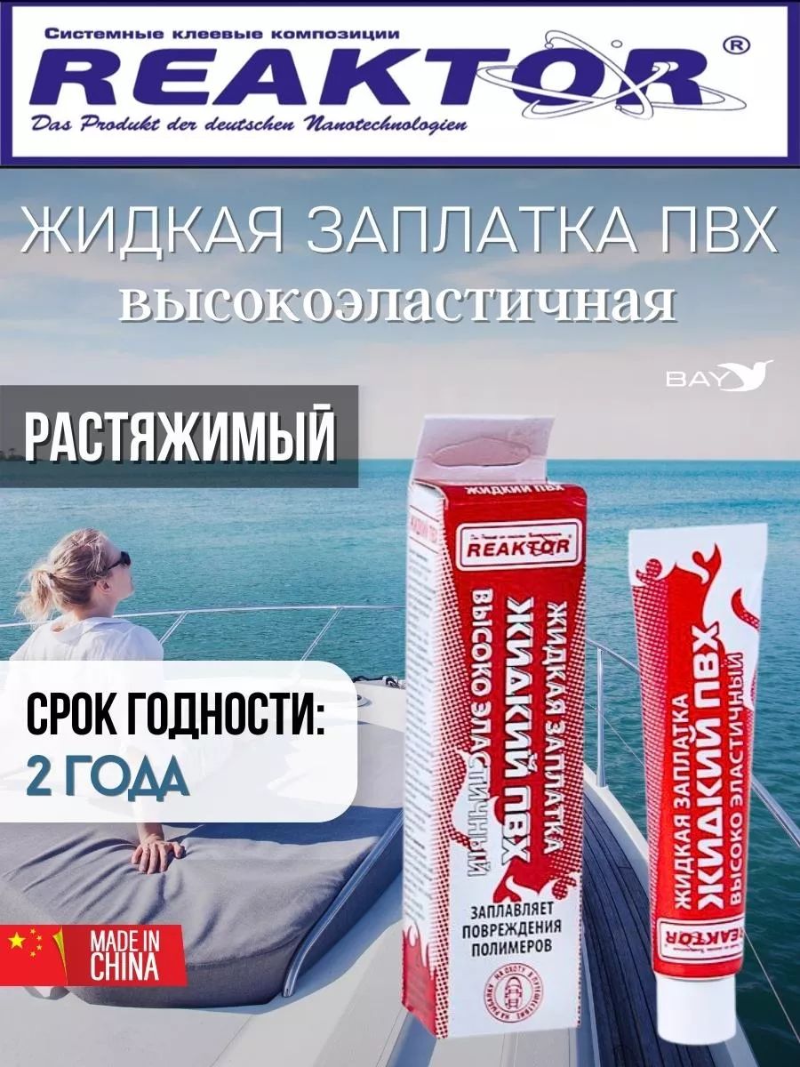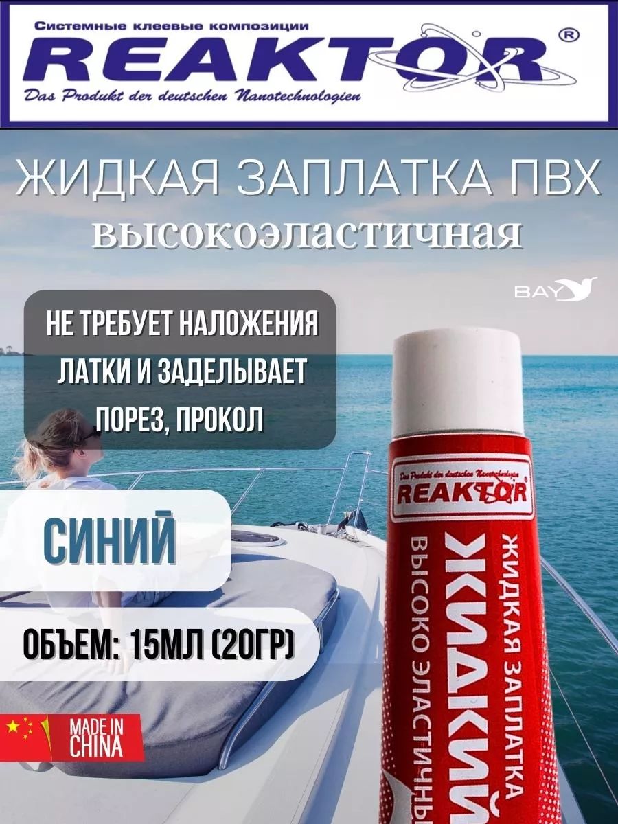 Жидкий ПВХ – продукт немецких нанотехнологий, позволяющий самостоятельно, без латки устранить небольшие порезы, проколы, потертости и т. п. повреждения надувных лодок, бассейнов, тентов, вейдерсов, сапог, гидрокостюмов и других изделий из пвх тканей, неопрена и прочих полимеров. Неармированный Жидкий ПВХ представляет собой композиционный состав суспензии поливинилхлорида, активаторов, ускорителей и стабилизаторов. В процессе полимеризации Жидкий ПВХ, с помощью активных реагентов, воздействует на ткани пвх, растворяет их, проникая в кордовую структуру материала и образует с ним единое целое – поливинилхлоридное покрытие (пленку). Для достижения наилучшего результата: Очистите и обезжирьте поврежденную поверхность Активатором, который гарантированно поможет достичь максимально возможную адгезию жидкого пвх с поливинилхлоридными тканями. В случае отсутствия активатора допустимо использовать любой спирто-, или ацетоно- содержащий растворитель, однако 100% результат в этом случае не гарантирован. 10 – 15 раз встряхните тюбик, чтобы размешать ингредиенты. Нанесите Жидкий ПВХ на повреждение: всё, работы по ремонту закончены! Поскольку жидкая заплатка – это всего лишь поливинилхлоридная пленка, то она предназначена для ремонта небольших повреждений. Если травления значительны, наносите Жидкий ПВХ Reaktor послойно через каждые 15 – 30 минут: чем более серьезны травления, тем большее количество слоев следует нанести. Для небольшого прокола крючком достаточно одной капли «с горкой»; для травления шва на каждые 1 – 2 сантиметра – дополнительный слой. Во избежание протекания, простелите полиэтиленовый пакет под повреждение. Полная полимеризация наступит не ранее чем через 48 часов, однако изделие можно использовать под неполной нагрузкой спустя 3 – 12 часов (зависит от характера повреждения и температуры окружающего воздуха).