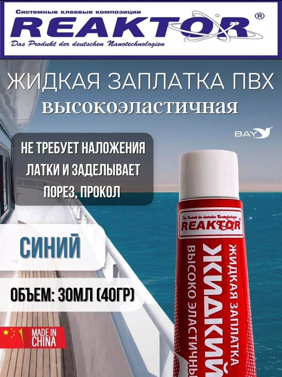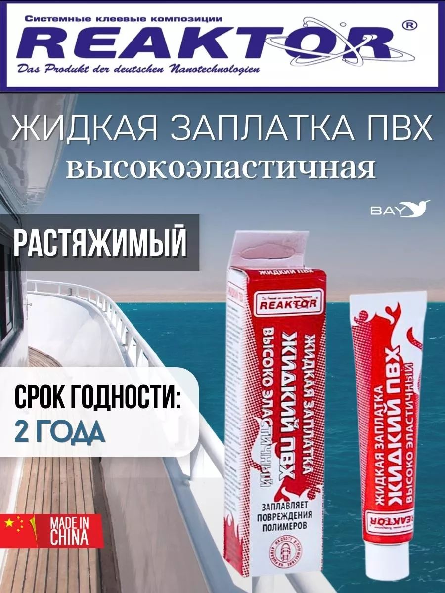 Жидкий ПВХ – продукт немецких нанотехнологий, позволяющий самостоятельно, без латки устранить небольшие порезы, проколы, потертости и т. п. повреждения надувных лодок, бассейнов, тентов, вейдерсов, сапог, гидрокостюмов и других изделий из пвх тканей, неопрена и прочих полимеров. Неармированный Жидкий ПВХ представляет собой композиционный состав суспензии поливинилхлорида, активаторов, ускорителей и стабилизаторов. В процессе полимеризации Жидкий ПВХ, с помощью активных реагентов, воздействует на ткани пвх, растворяет их, проникая в кордовую структуру материала и образует с ним единое целое – поливинилхлоридное покрытие (пленку). Для достижения наилучшего результата: Очистите и обезжирьте поврежденную поверхность Активатором, который гарантированно поможет достичь максимально возможную адгезию жидкого пвх с поливинилхлоридными тканями. В случае отсутствия активатора допустимо использовать любой спирто-, или ацетоно- содержащий растворитель, однако 100% результат в этом случае не гарантирован. 10 – 15 раз встряхните тюбик, чтобы размешать ингредиенты. Нанесите Жидкий ПВХ на повреждение: всё, работы по ремонту закончены! Поскольку жидкая заплатка – это всего лишь поливинилхлоридная пленка, то она предназначена для ремонта небольших повреждений. Если травления значительны, наносите Жидкий ПВХ Reaktor послойно через каждые 15 – 30 минут: чем более серьезны травления, тем большее количество слоев следует нанести. Для небольшого прокола крючком достаточно одной капли «с горкой»; для травления шва на каждые 1 – 2 сантиметра – дополнительный слой. Во избежание протекания, простелите полиэтиленовый пакет под повреждение. Полная полимеризация наступит не ранее чем через 48 часов, однако изделие можно использовать под неполной нагрузкой спустя 3 – 12 часов (зависит от характера повреждения и температуры окружающего воздуха).