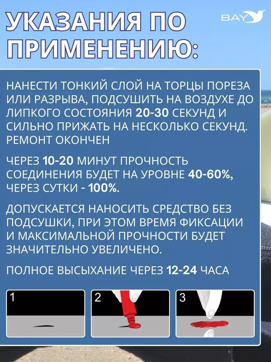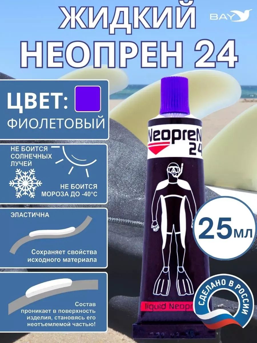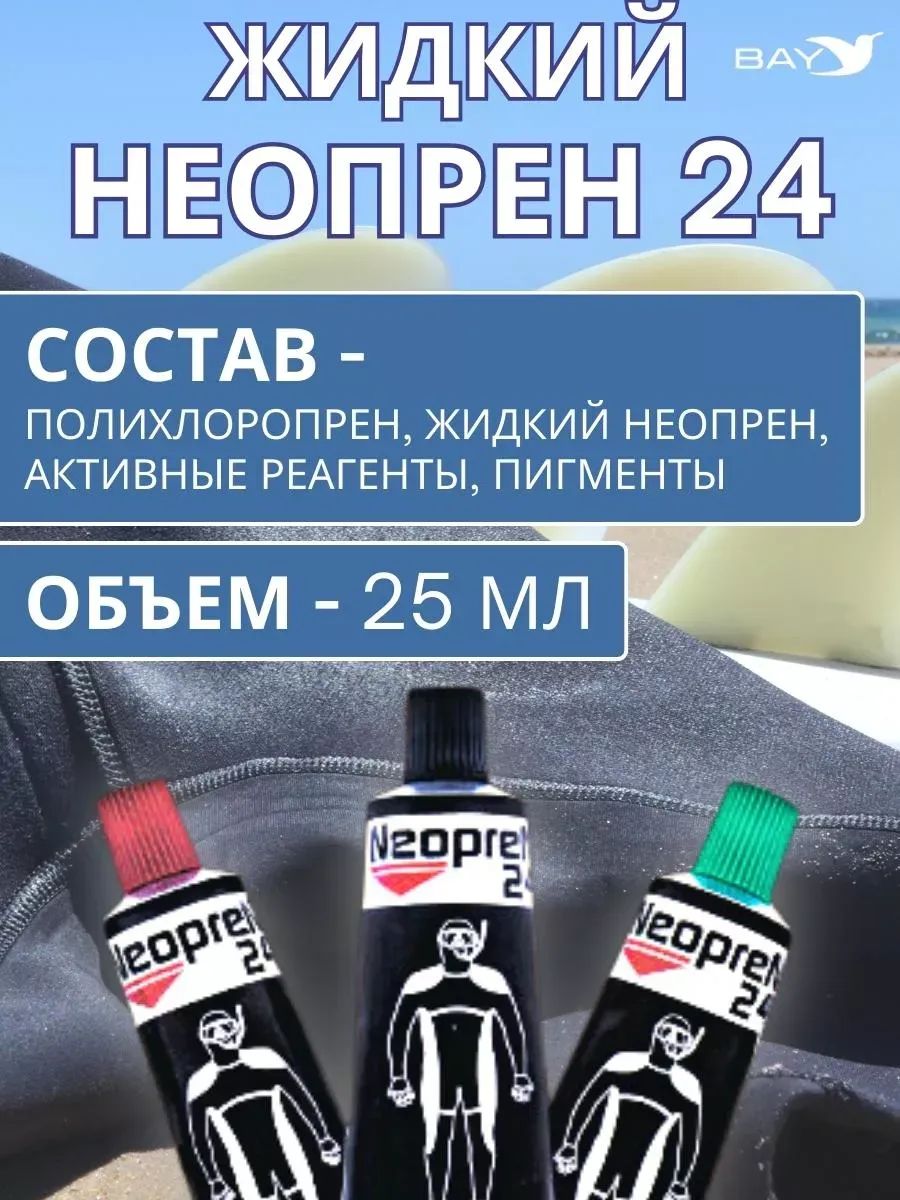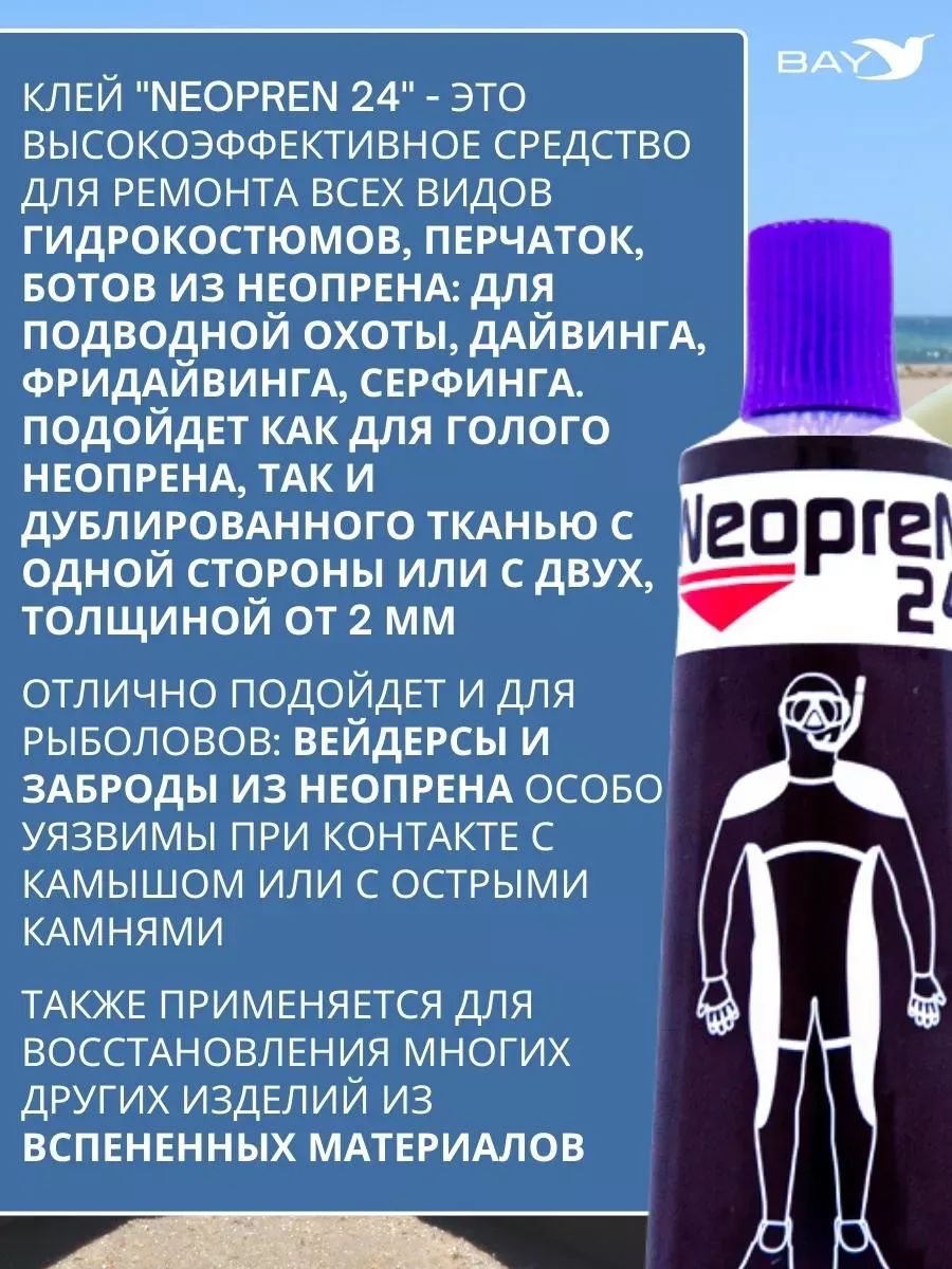 Клей "NEOPREN 24" - это высокоэффективное средство для ремонта всех видов гидрокостюмов, перчаток, ботов из неопрена: для подводной охоты, дайвинга, фридайвинга, серфинга. Подойдет как для голого неопрена, так и дублированного тканью с одной стороны или с двух, толщиной от 2 мм. Отлично подойдет и для рыболовов: вейдерсы и заброды из неопрена особо уязвимы при контакте с камышом или с острыми камнями. Также применяется для восстановления многих других изделий из вспененных материалов.Инструкция по применению: Нанести тонкий слой на торцы пореза или разрыва, подсушить на воздухе до липкого состояния 20-30 секунд и сильно прижать на несколько секунд. Ремонт окончен. Через 10-20 минут прочность соединения будет на уровне 40-60%, через сутки - 100%. Допускается наносить средство без подсушки, при этом время фиксации и максимальной прочности будет значительно увеличено. При сложном ремонте больших порезов и разрывов рекомендуется использовать цветное средство Neopren 24, отличного по цвету от ремонтируемого материала. К примеру, на черном неопрене, используя желтый или другой маркерный цвет, вы видите все заполненные клеем участки и контролируете равномерную толщину нанесения. Результат - аккуратный шов, качественный ремонт и полная герметичность. Полное высыхание через 12-24 часа. Характеристики: Объем - 25 мл. Состав - полихлоропрен, жидкий неопрен, активные реагенты, пигменты.