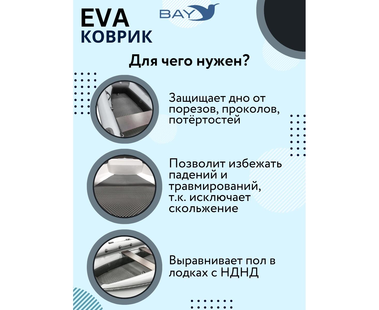 - Позволяет содержать вашу лодку в чистоте и экономит ваше время на мытье пола в лодке. Вся грязь с обуви остается на Eva коврике и вам останется только сполоснуть сам коврик, в то время как пол лодки остается чистым. Коврик Эва легко моется, не впитывает влагу и быстро сохнет.