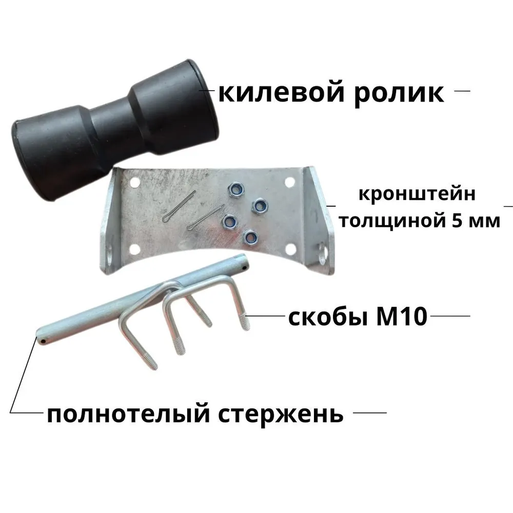 Килевой ролик с кронштейном предназначен для установки на лодочный прицеп и используется при спуске и подъёме лодки. Конструкция облегчает процесс погрузки и разгрузки, снижая нагрузку на корпус судна и обеспечивая более аккуратное перемещение лодки по прицепу.