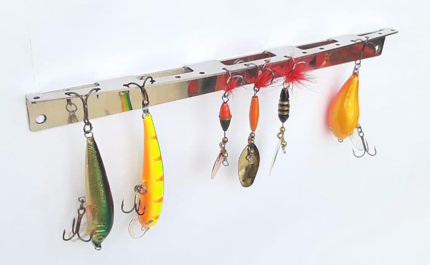 Воблер менеджер поможет вам не тратить время на поиски приманки в ящике. Когда перед глазами весь арсенал, проще сделать правильный выбор. И в конце концов это красиво! Крепится на банки, столик, транец в лодке ПВХ или на любое удобное место в катере или вёсельной лодке. Материал: нержавеющая сталь толщиной 1,5 мм Габариты: длина 250 мм, полочка 20 мм, отверстий D3 мм под воблеры - 18 В комплект включены 3 нержавеющих шурупа 3,2 Х 16 мм.