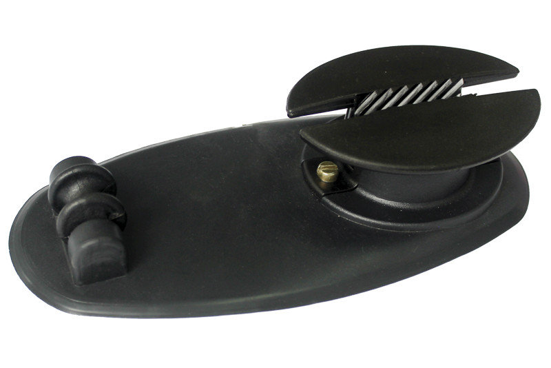 Рым предназначен для установки на борт надувной лодки, изготовленной из ПВХ материала. Такой якорный рым снабжён замком из твёрдого пластика с V-образным профилем, который позволяет быстро зафиксировать верёвку в необходимом положении. Чтобы сняться с якоря достаточно подтянуть верёвку на себя, и она немедленно «высвободится» из замка рыма.