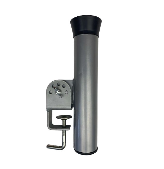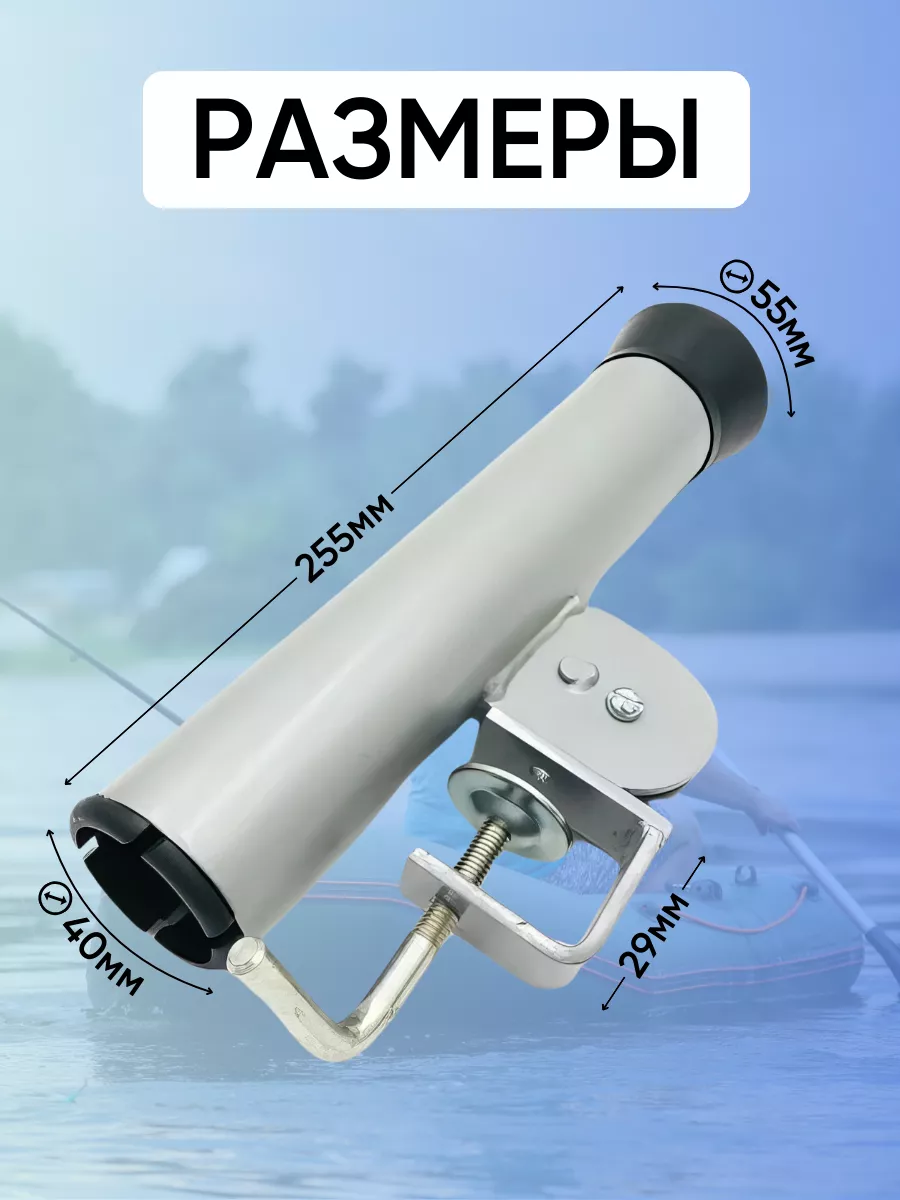 Удочкодержатель в лодку пвх, риб. Держатель спиннинга предназначен для фиксации спиннинга на надувной лодке. Крепится к лавке, либо к транцу надувной лодки и имеет регулировку угла наклона с фиксированными рабочими положениями. Внутренний диаметр стакана 40мм, высота 255мм. Материал- сталь покрытая полиэфирной порошковой краской. Вставка из полипропилена смягчает соприкосновение спининнга с держателем.