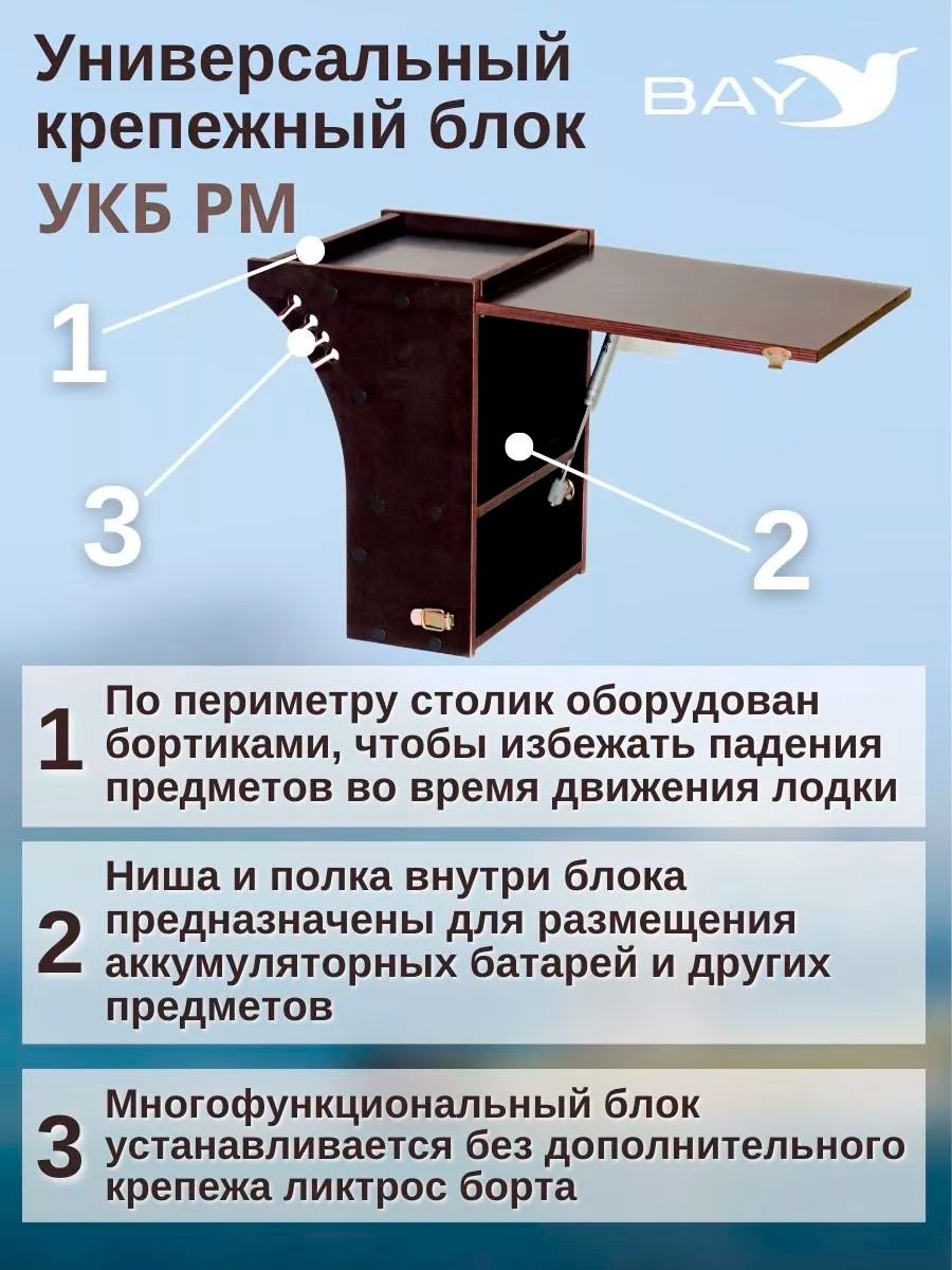Готовый набор: Столик для лодки ПВХ + Крепление экрана эхолота 10" , УКБ радиус малый + столик/дверца (УКБ РМ) Универсальный крепежный блок