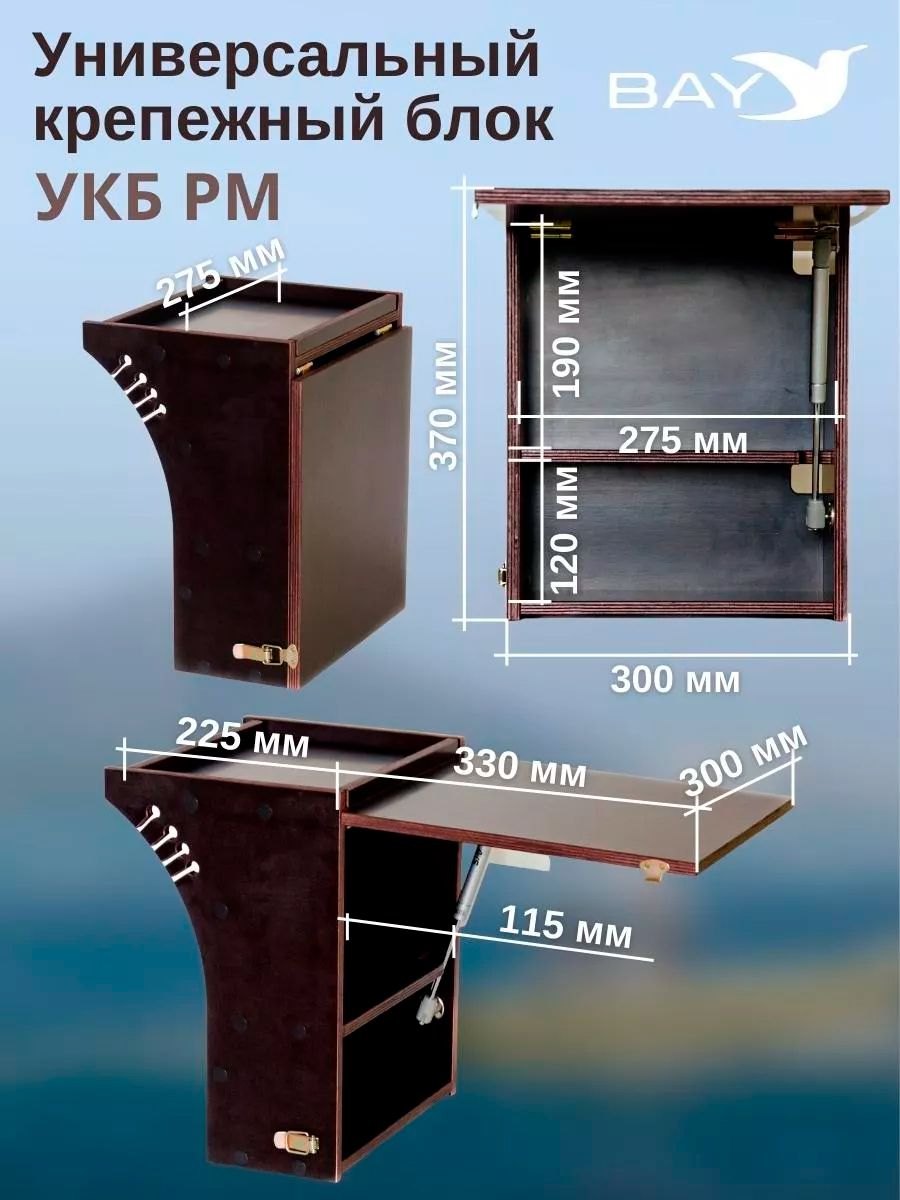 Поворотное крепление для головы эхолота 10". Длина: 26 см. Удобный аксессуар для любого рыбака!* Все торцы каждого элемента ящика обработаны специальным составом для защиты от воздействия ультрафиолетового излучения, влаги и грибков.