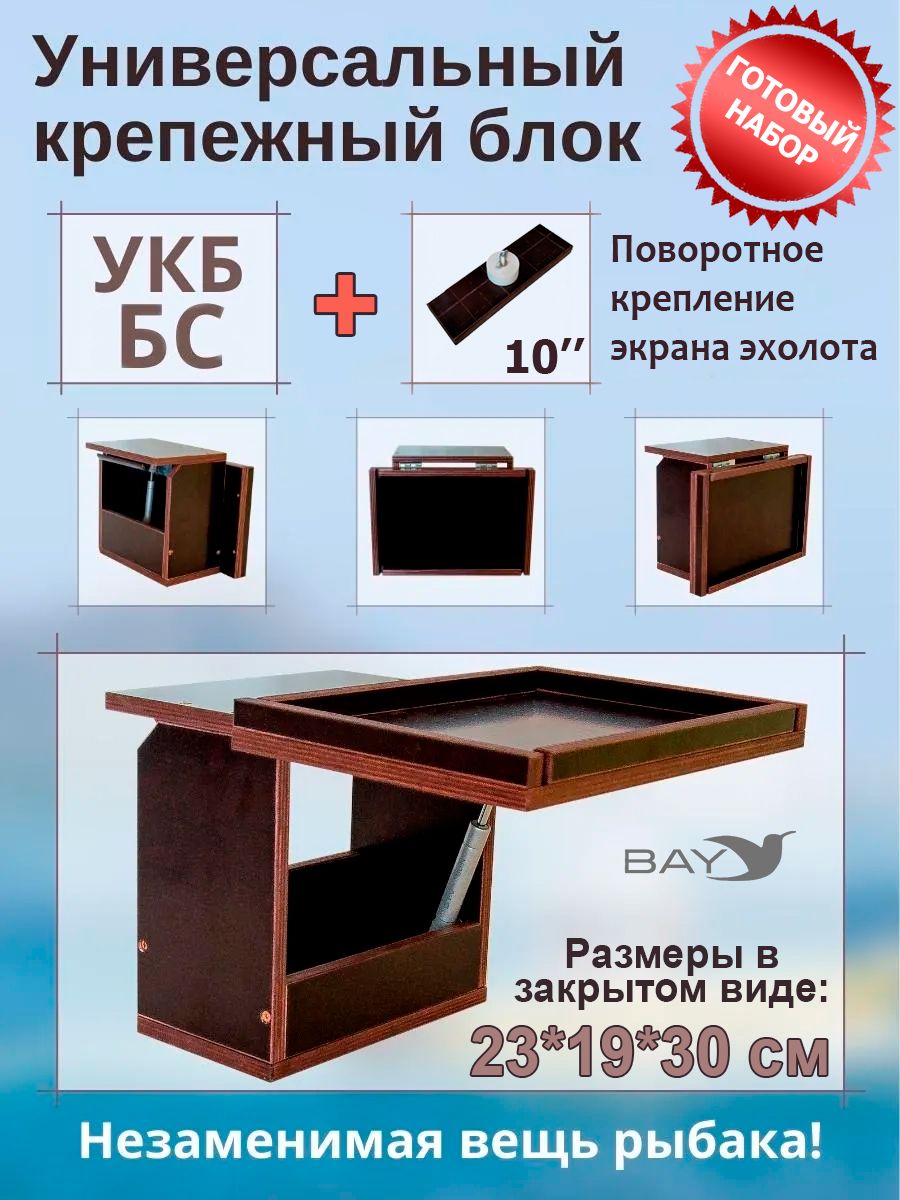 Готовый набор: Столик для лодки ПВХ + Крепление экрана эхолота 10". УКБ + столик/дверца (УКБ БС) Универсальный крепежный блок