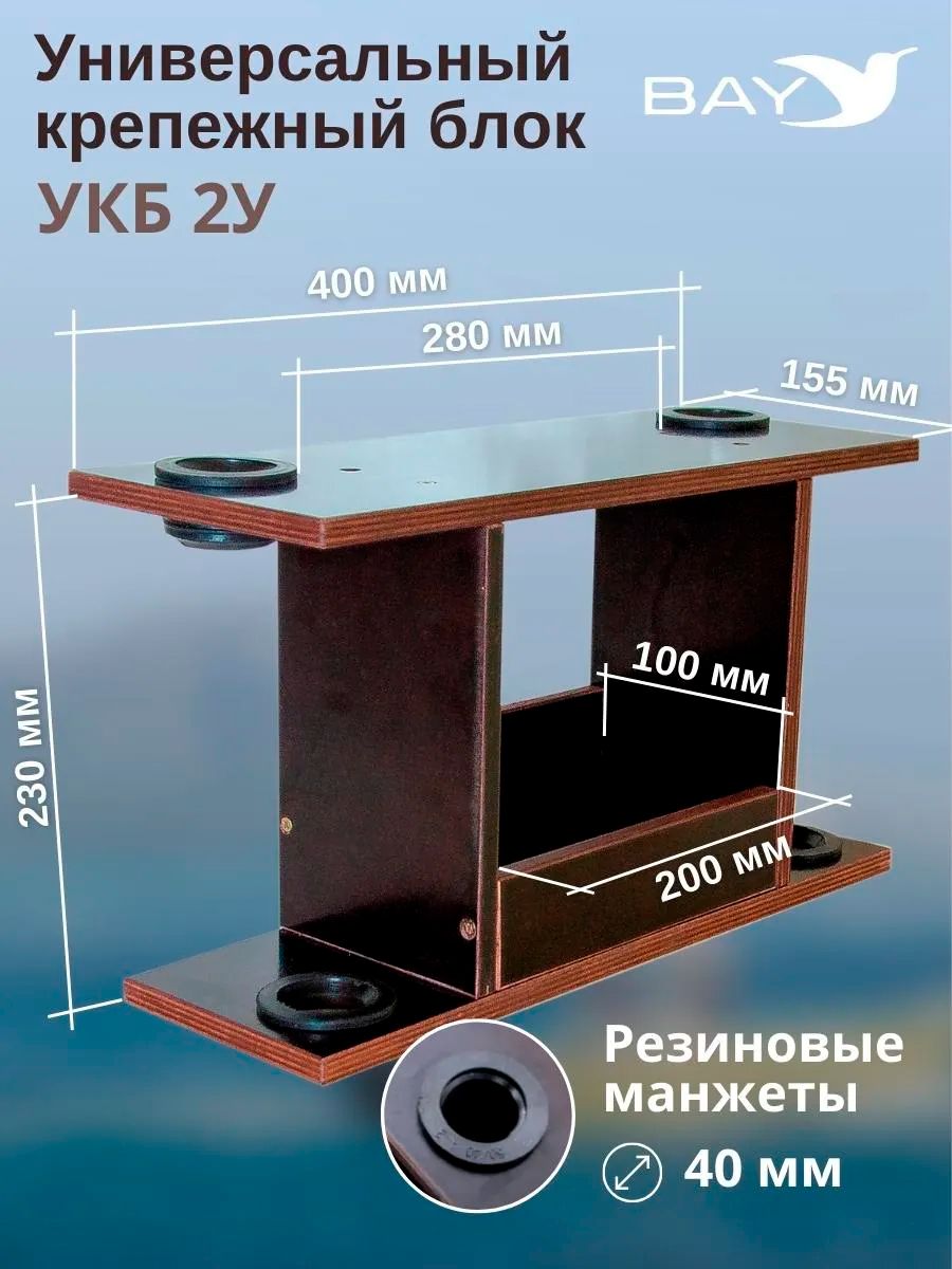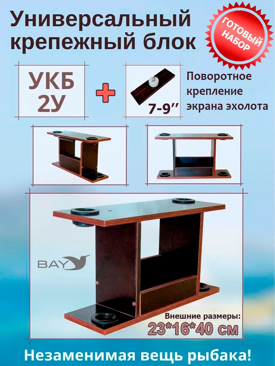 Универсальный крепежный блок с отверстиями под 2 удилища УКБ 2У - это многофункциональная конструкция, выполненная из водостойкой фанеры, которая позволяет удобно зафиксировать эхолот (картплоттер, навигатор) и АКБ, два спиннинга или удочки. Функциональная и универсальная вещь для Вашего комфорта.