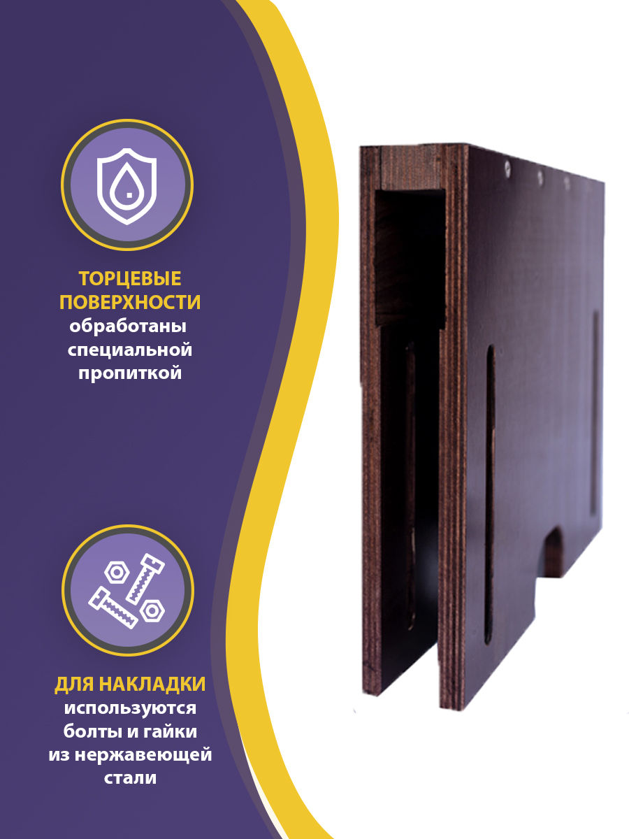 * Все торцы каждого элемента ящика обработаны специальным составом для защиты от воздействия ультрафиолетового излучения, влаги и грибков.