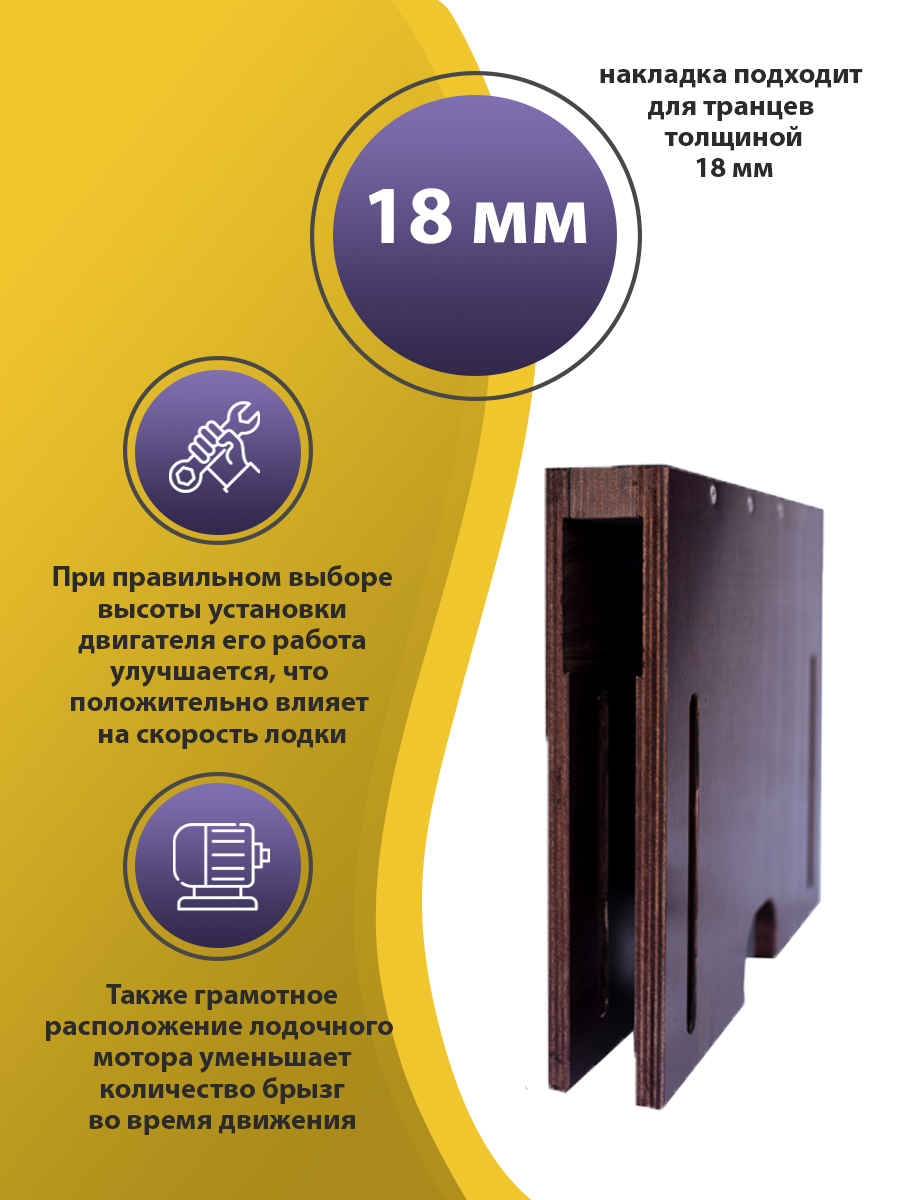 Накладка на транец для поднятия мотора 18 мм