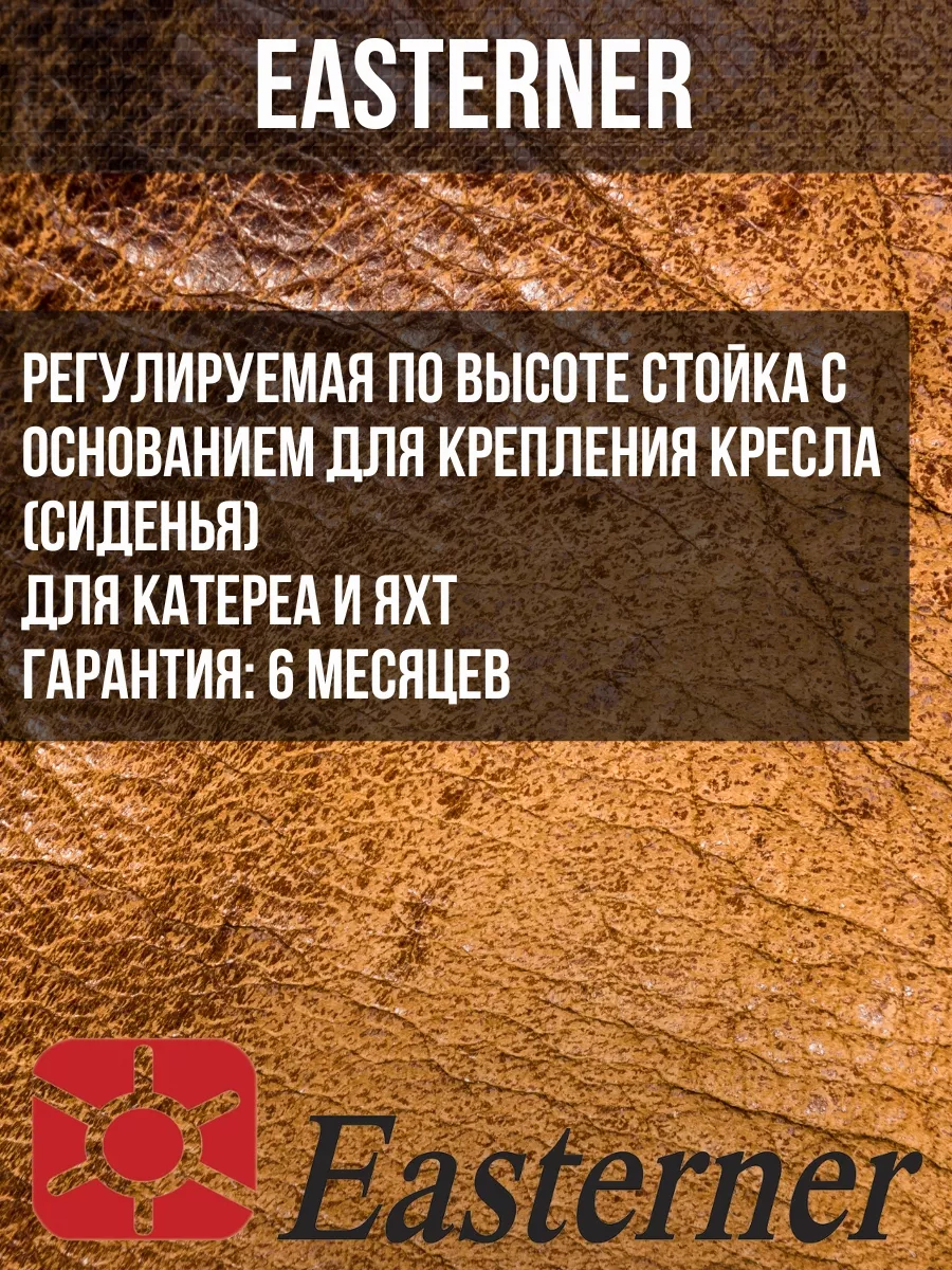 Стойка под сиденье регулируемая 75304 - это регулируемая по высоте стойка с основанием для крепления кресла (сиденья) на катере или яхте. Высота: 405 мм. Размер площадки под кресло: 180х180 мм. Размер основания: 170х170 мм. Материал: сталь.