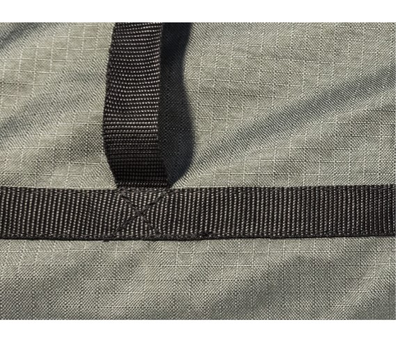 Снабжена ручками для переноски, а также, усилена поддерживающими стропами, распределяющими нагрузку равномерно по всей поверхности.