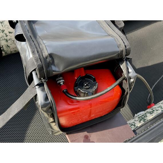 Сумка под бак объемом 24 литра идеально подходит для хранения и транспортировки топливного контейнера. Высота сумки составляет 30 см, что позволяет ей фиксироваться к банке, оставляя сам бак на дне лодки. Четыре выхода для топливного коннектора обеспечивают удобный доступ при заправке без необходимости извлекать бак. Жесткие стенки и стропы для фиксации обеспечивают надежность, а специальный карман для масла на тыльной стороне способствует минимизации запаха бензина. Сумка подходит как для использования на воде, так и для транспортировки в автомобиле.