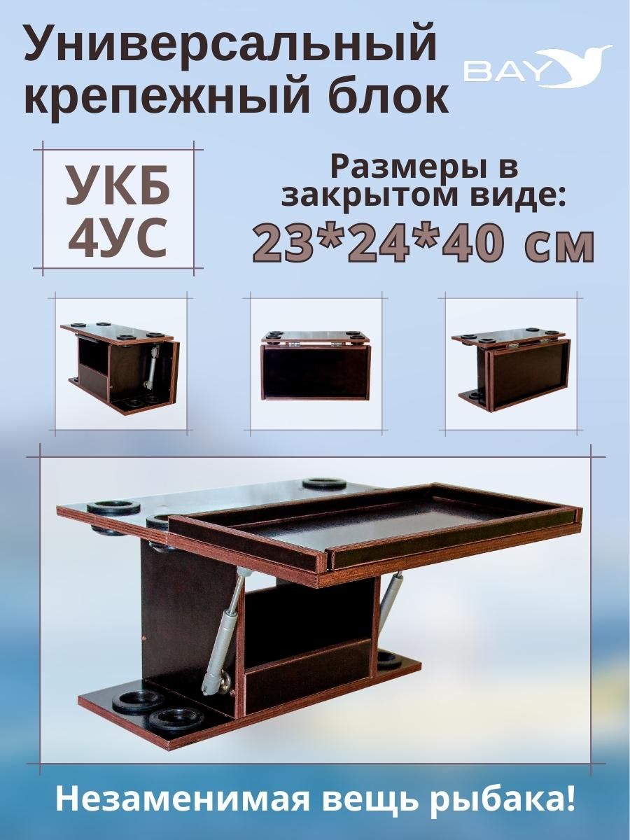 Столик для лодки ПВХ Универсальный крепежный блок с отверстиями под 4 удилища + столик/дверца (УКБ 4УС)