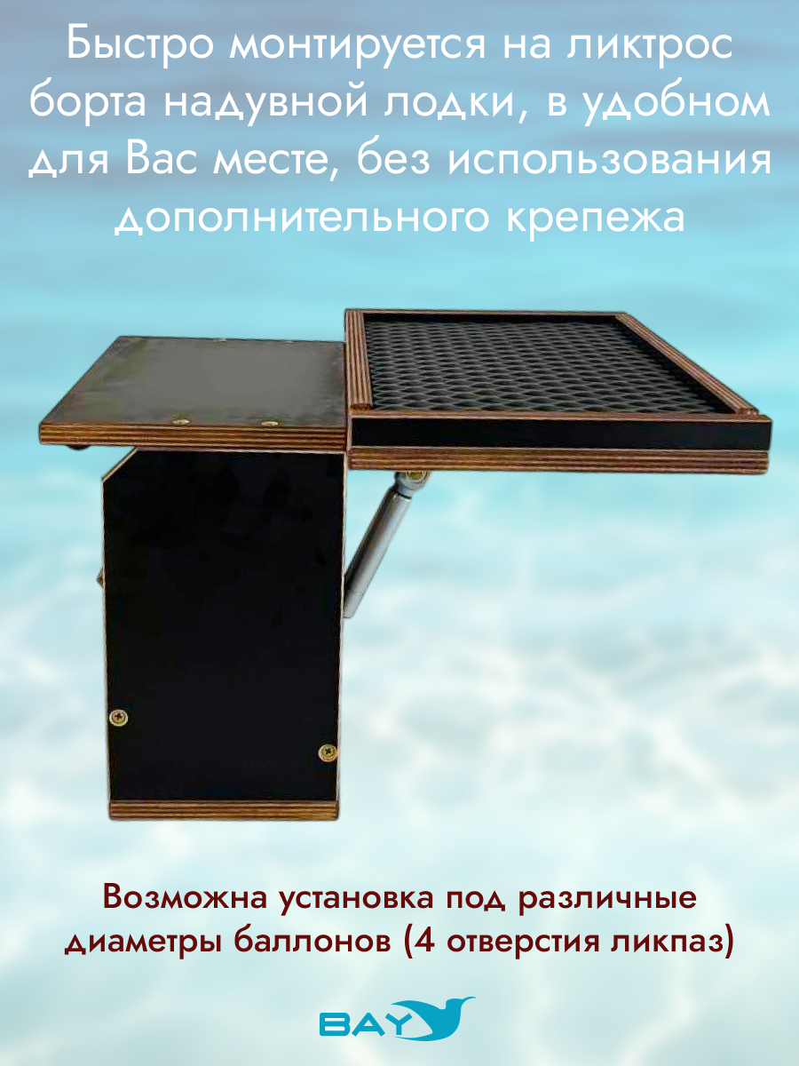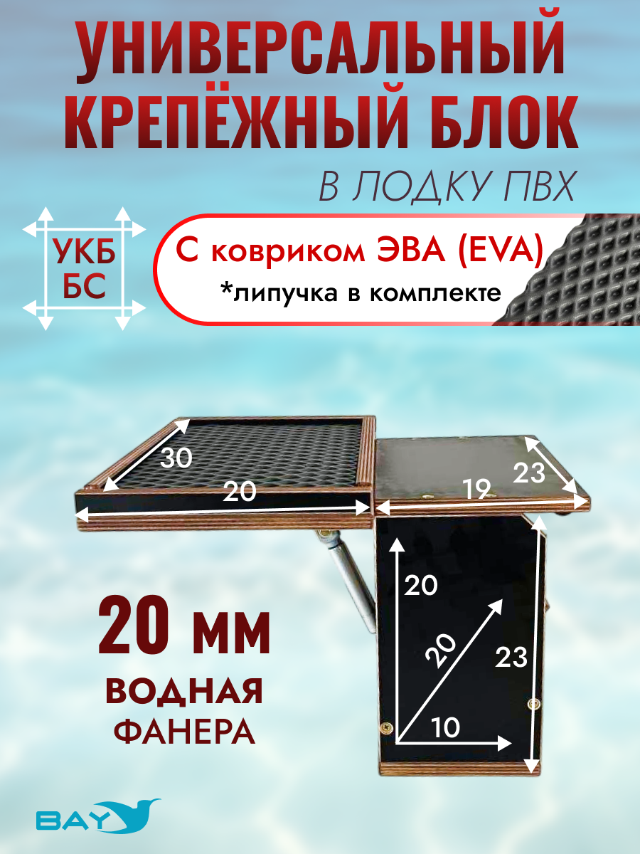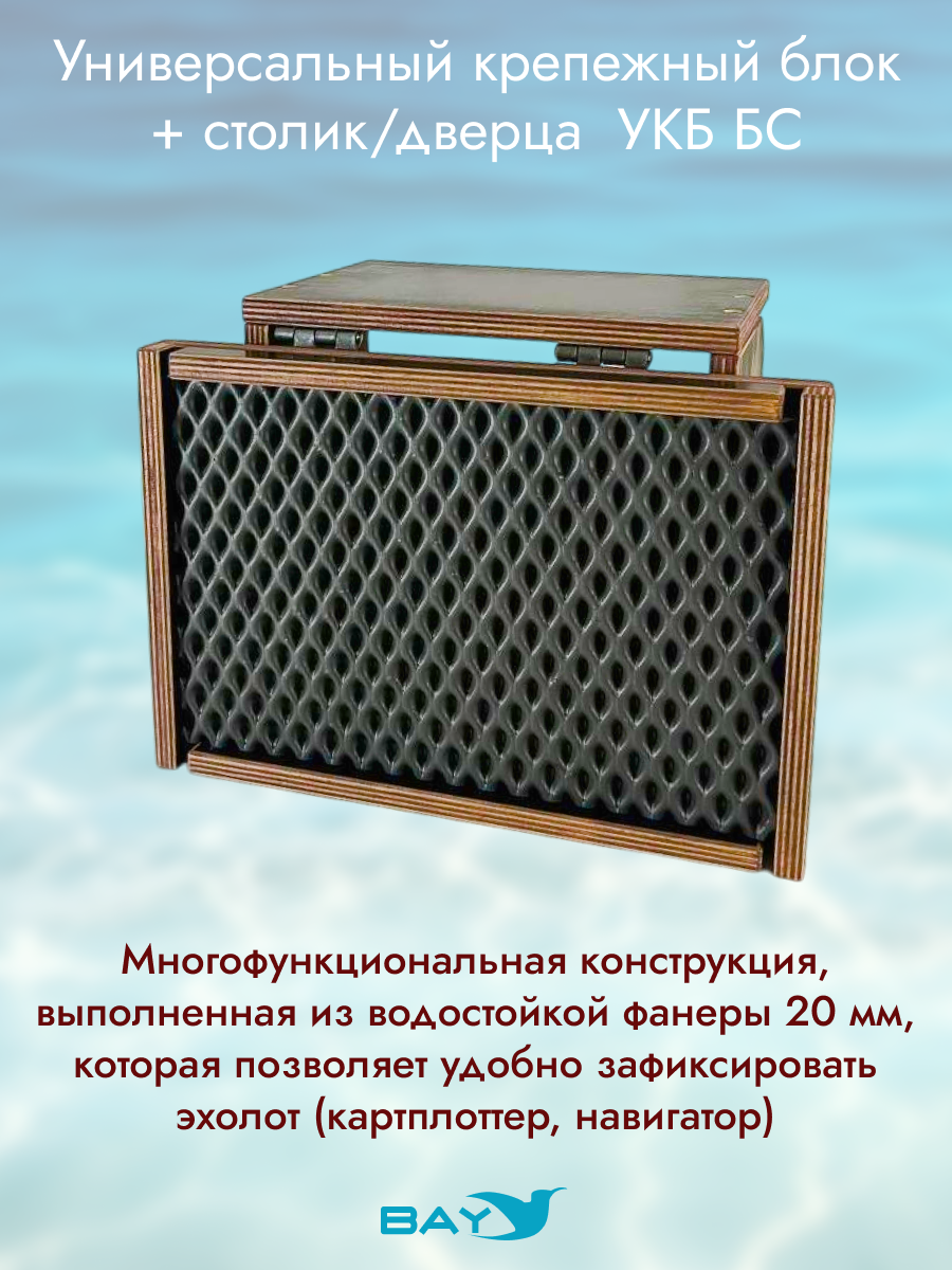 Универсальный крепежный блок + столик/дверца УКБ БС - это многофункциональная конструкция, выполненная из водостойкой фанеры, которая позволяет удобно зафиксировать эхолот (картплоттер, навигатор) и АКБ. Функциональная и универсальная вещь для Вашего комфорта.