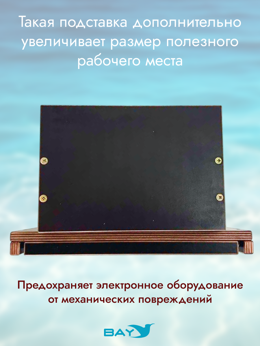 Такая подставка дополнительно увеличивает размер полезного рабочего места и предохраняет электронное оборудование от механических повреждений.