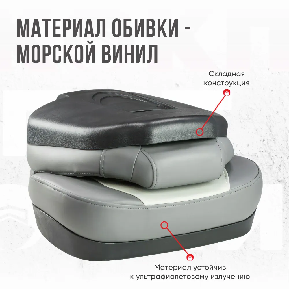 - Морской винил: обивка из высококачественного материала, устойчивого к влаге, ультрафиолету и износу, делает кресло долговечным и подходящим для эксплуатации в экстремальных погодных условиях.