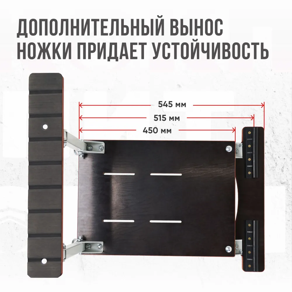 - Толщина фанеры – 18 мм, стали – 2 мм для всех кронштейнов и ножек (1.5 мм на дополнительных элементах).