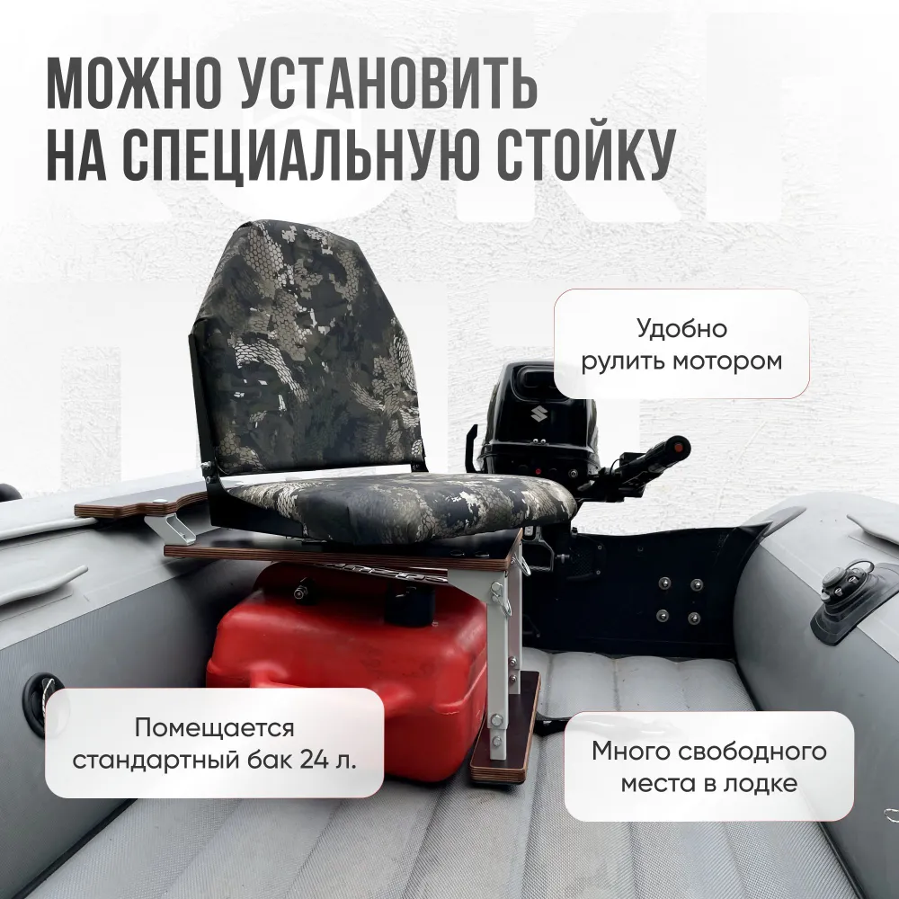 Кресло складное непромокаемое в лодку ПВХ, Кокпит, змеиный принт - это мягкое и удобное кресло со складывающейся спинкой из непромокаемого материала Оксфорд 600D PU 1000. Кресло складывается вровень, основным преимуществом является компактность - толщина в сложенном состоянии. Можно сидеть на сложенном кресле!