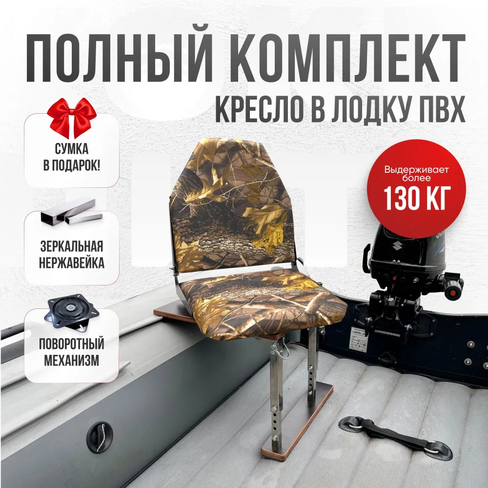 Кресло мягкое в лодку ПВХ полный комплект с опорой (нержавеющая сталь), Кокпит - это полностью собранный комплект для Вашей лодки с мягким креслом из непромокаемого материала Оксфорд 600D PU 1000 и рамой укороченной без занижения из зеркальной нержавейки AISI316. Данный комплект подходит для небольших лодок с шириной кокпита 60-76 см.