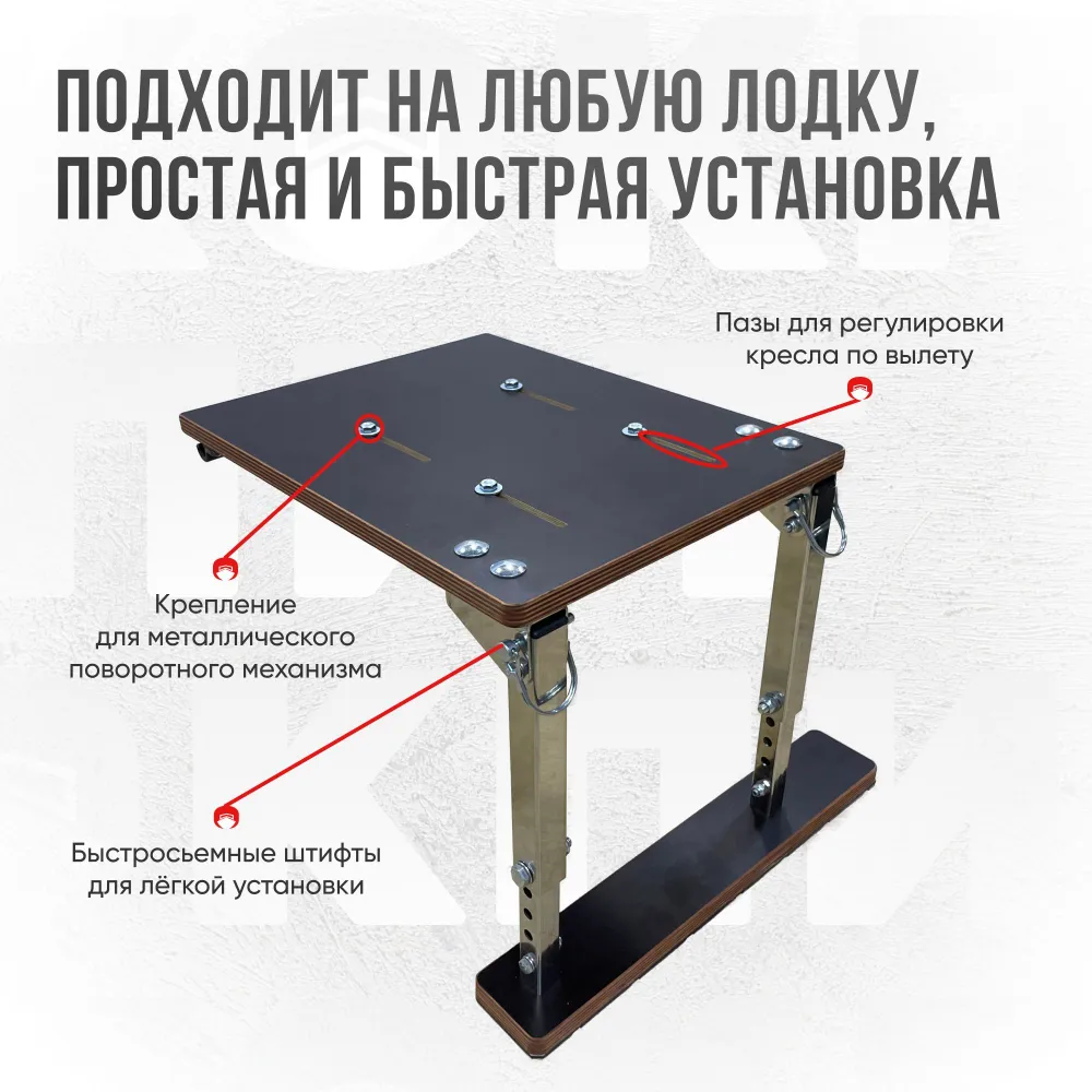 - Высота от пола до верха столешницы регулируется для точной установки на Вашу лодку от 280 мм. до 400 мм. с шагом в 20 мм.