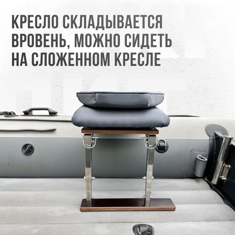 Кресло мягкое в лодку ПВХ полный комплект с опорой (нержавеющая сталь), Кокпит - это полностью собранный комплект для Вашей лодки с мягким креслом из непромокаемого материала Оксфорд 600D PU 1000 и рамой укороченной без занижения из зеркальной нержавейки AISI316. Данный комплект подходит для небольших лодок с шириной кокпита 60-76 см.