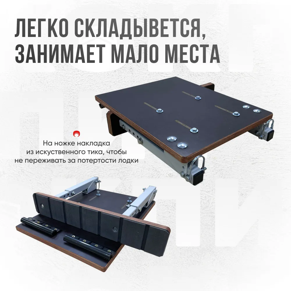 - Обеспечивает удобное управление лодочным мотором и позволяет комфортно расположиться в судне при рыбалке. Так же можно сложить опору для удобного хранения, регулировки и транспортировки.